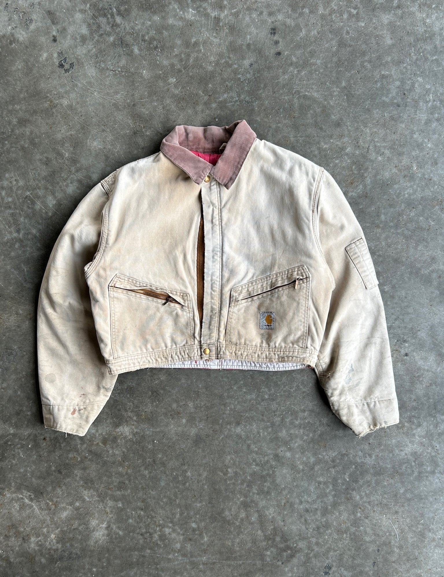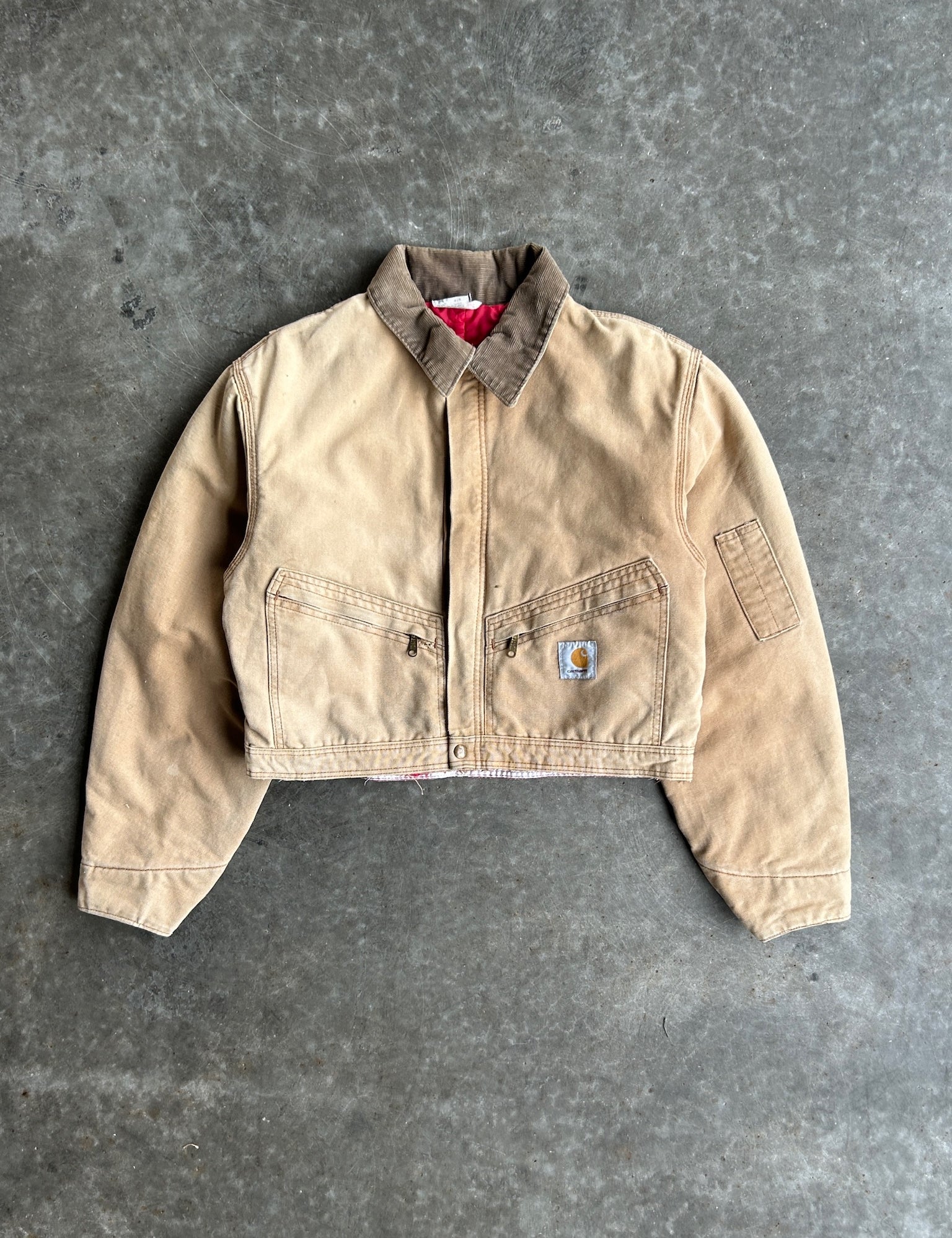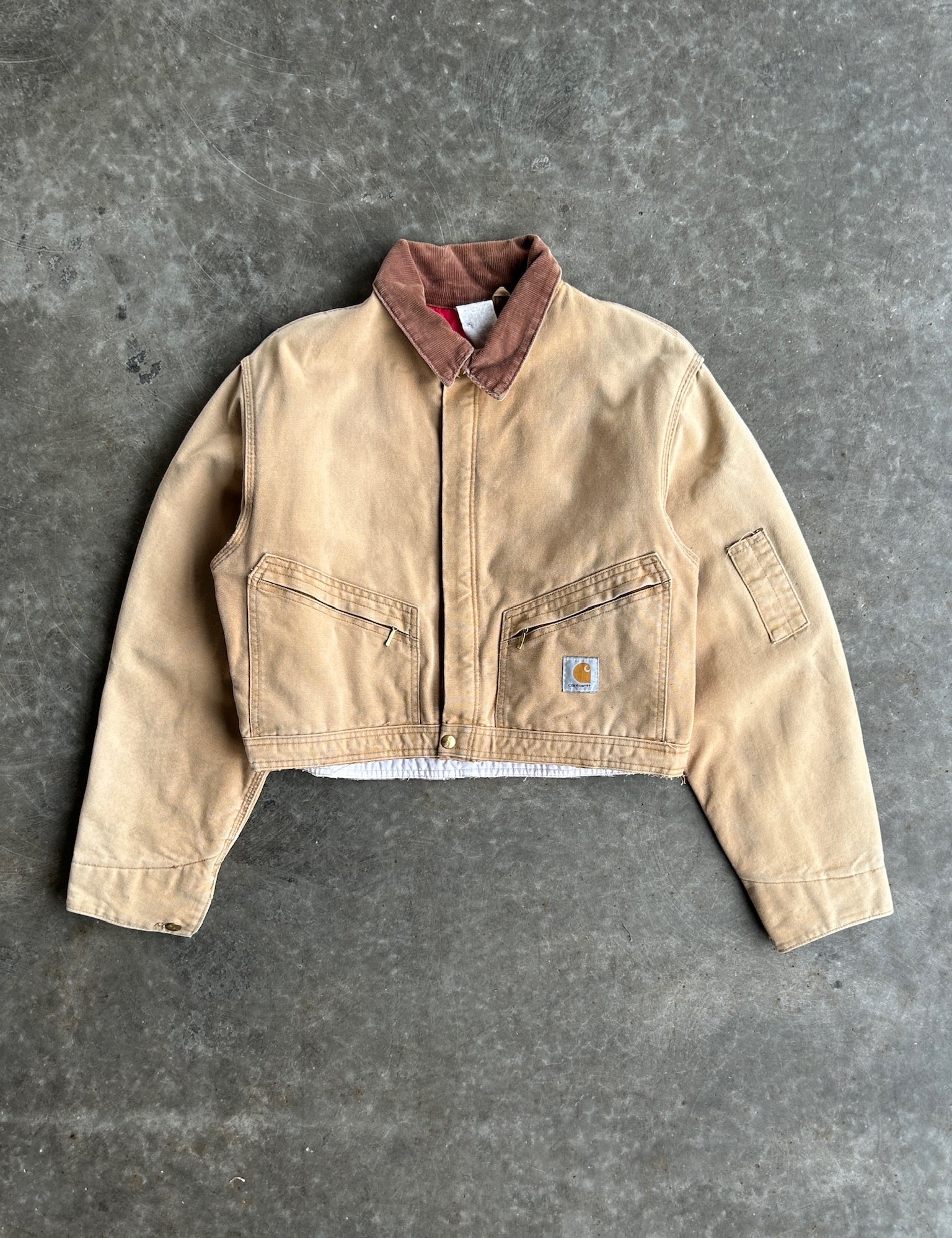 Vintage Faded Tan Cropped Carhartt Jacket - L