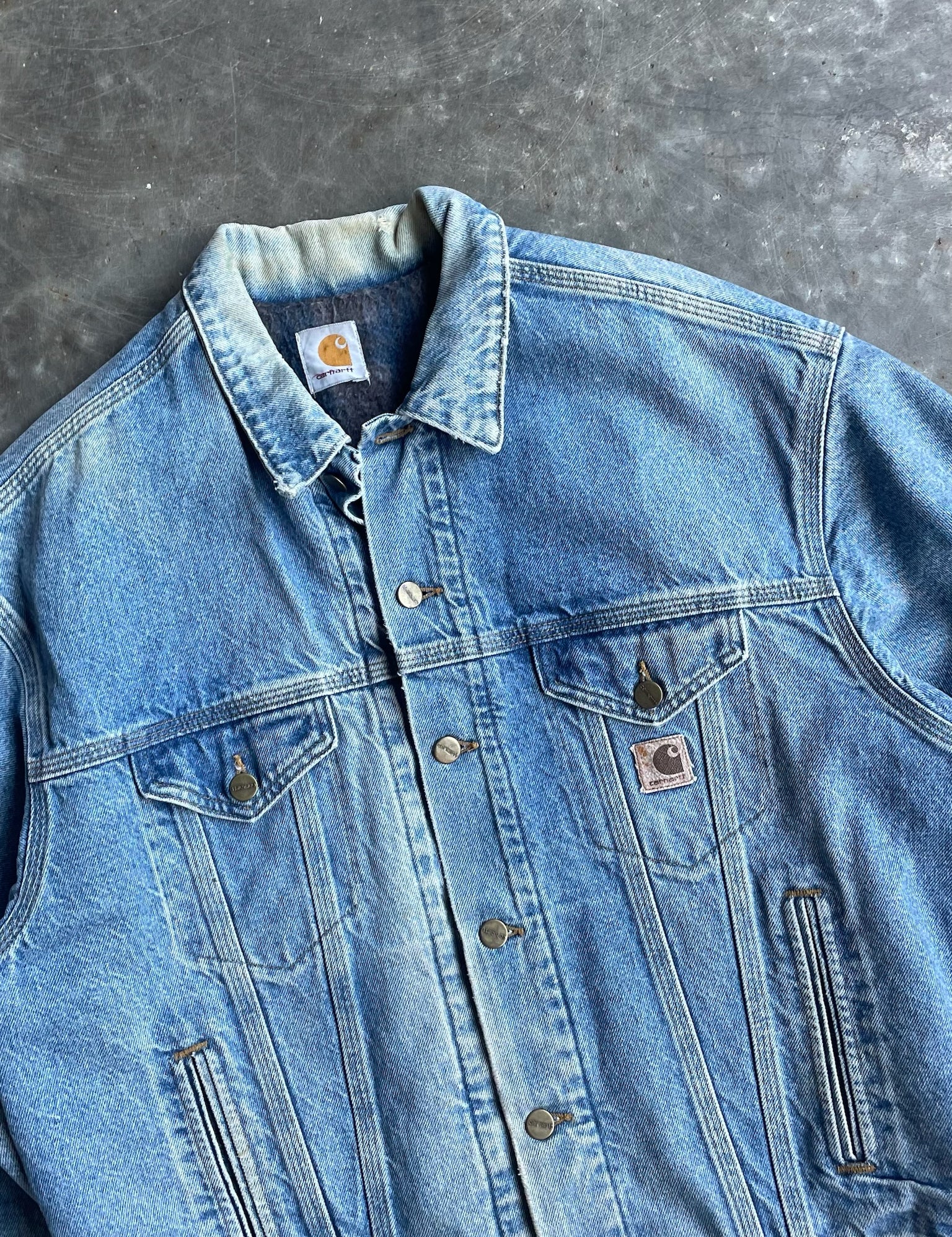 Vintage Denim Collared Button Up Carhartt Jacket - L