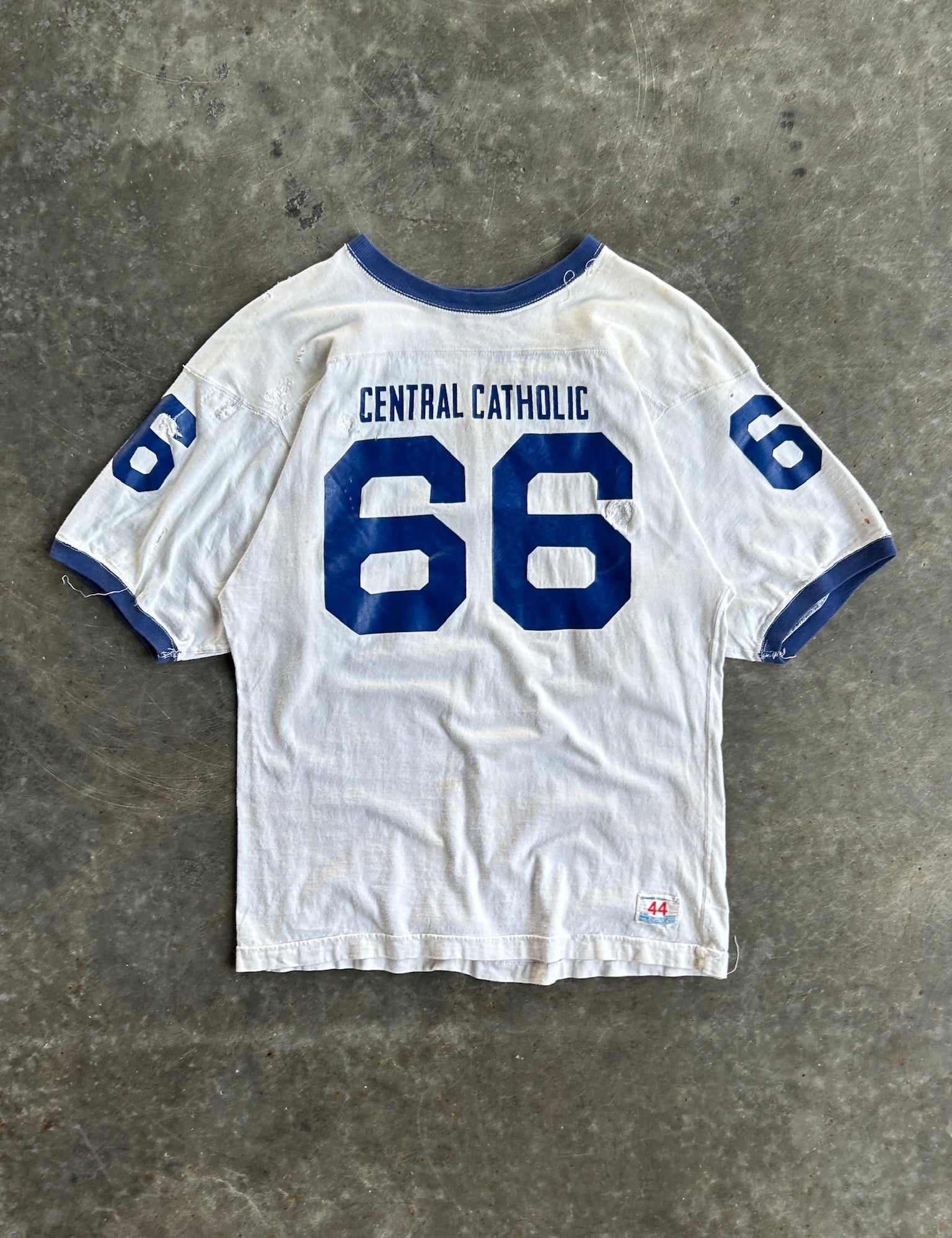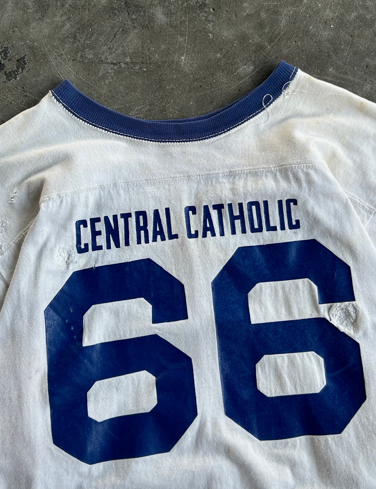 Vintage White & Navy Distressed Central Catholic Jersey Shirt - XL