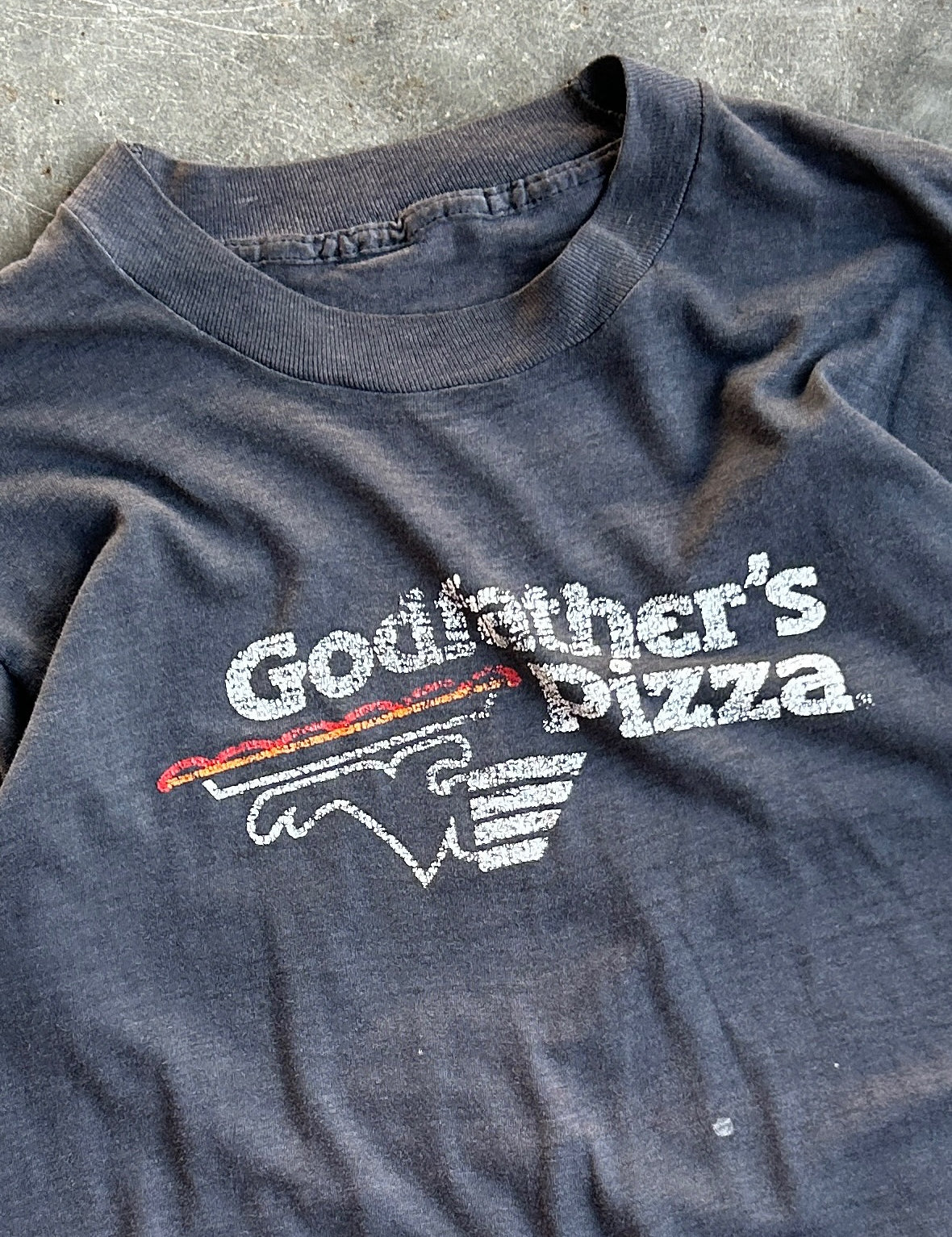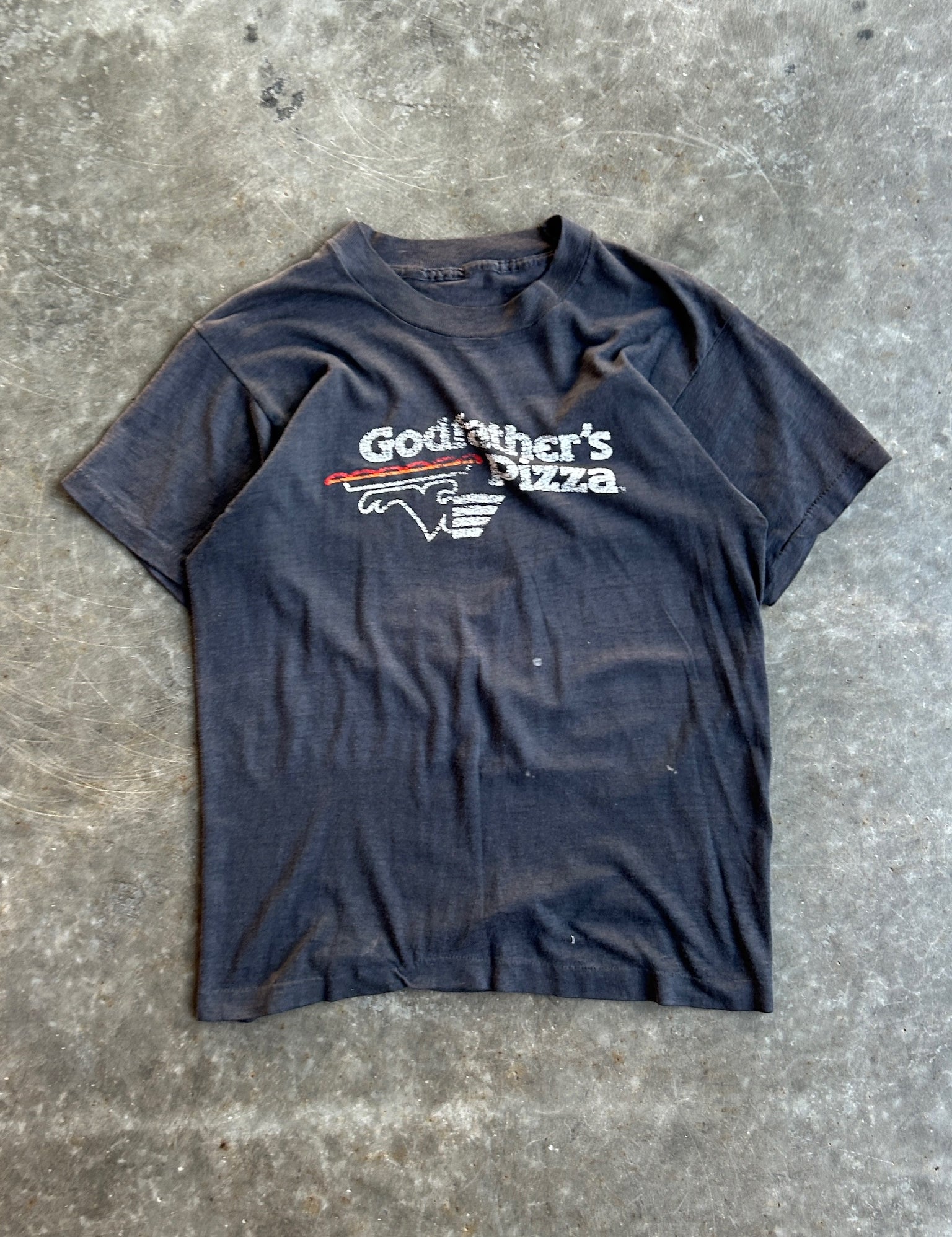 True Vintage Faded Black Godfathers Pizza Graphic Tee - M