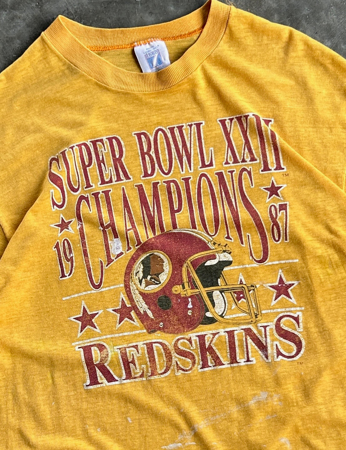 True Vintage Single-Stitch Yellow 1987 Redskins Super Bowl Champion Shirt - L