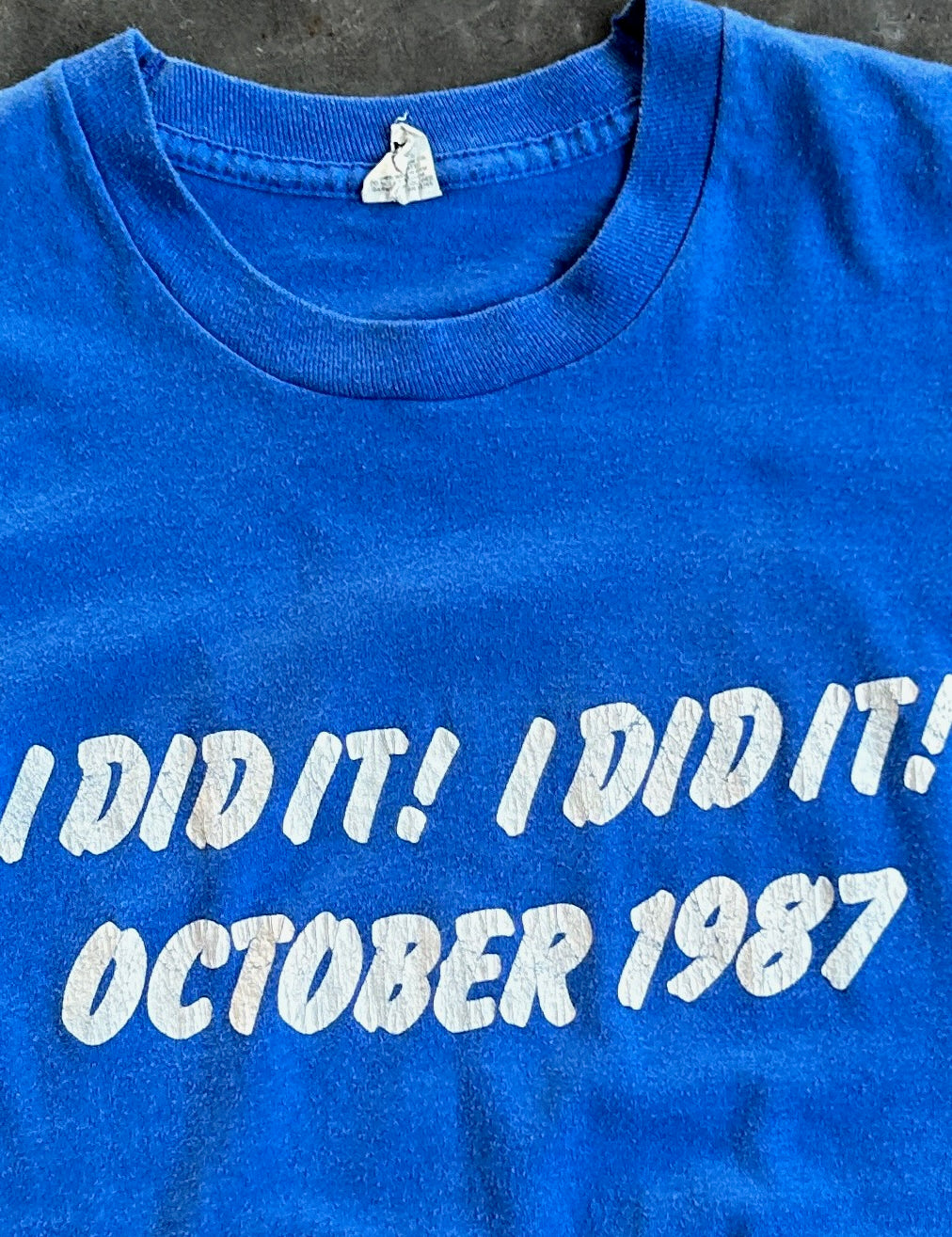 True Vintage Single-Stitch Cobalt Blue 1987 I Did It Tee - S