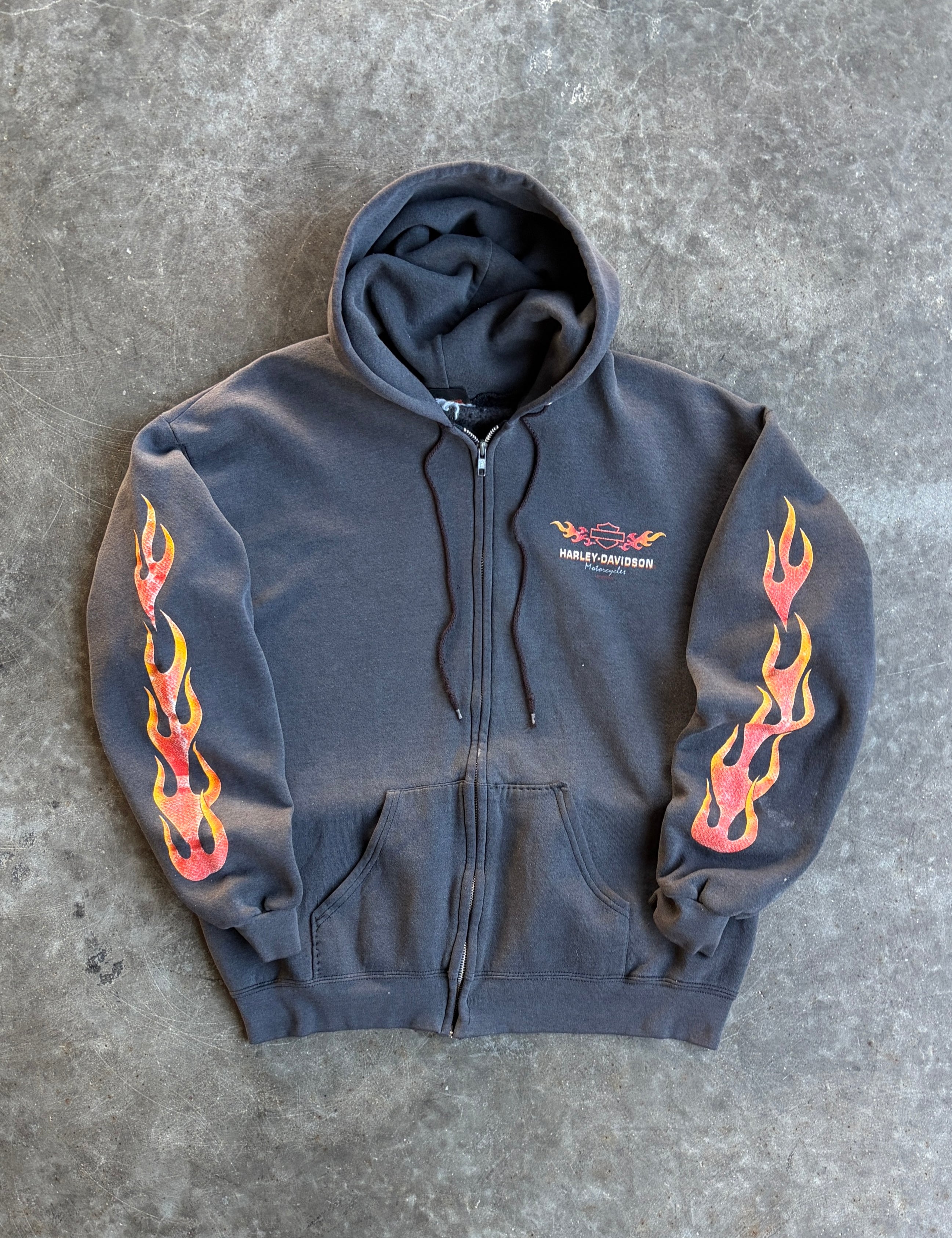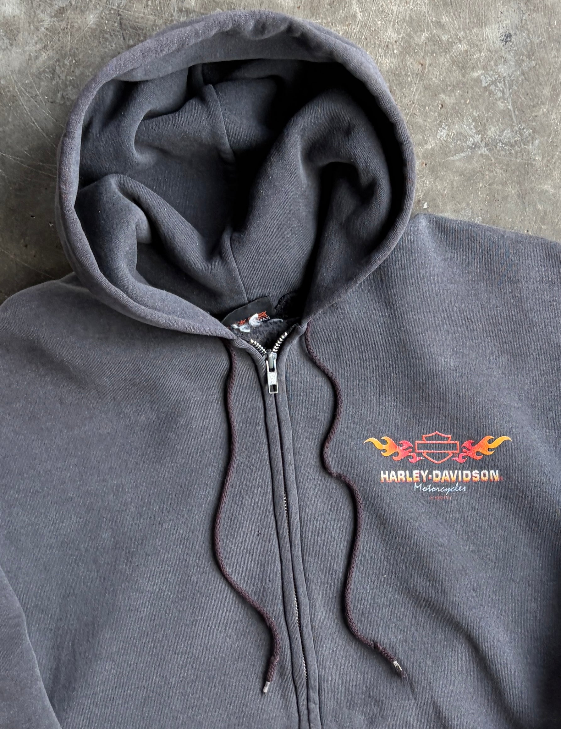 Vintage Harley Davidson Flame Zip Up Hoodie - L