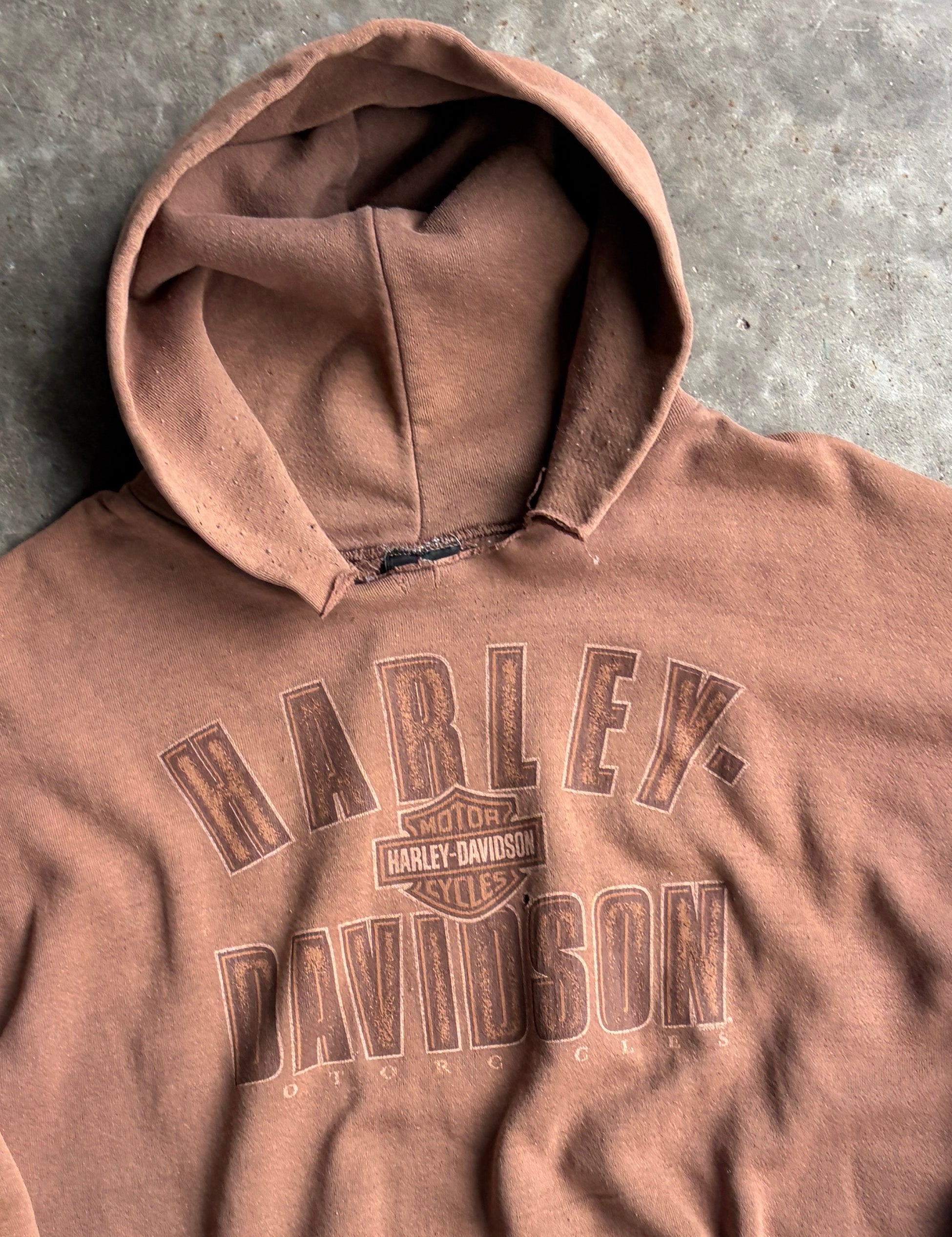 Vintage Brown Boxy Harley Davidson Hoodie - XL