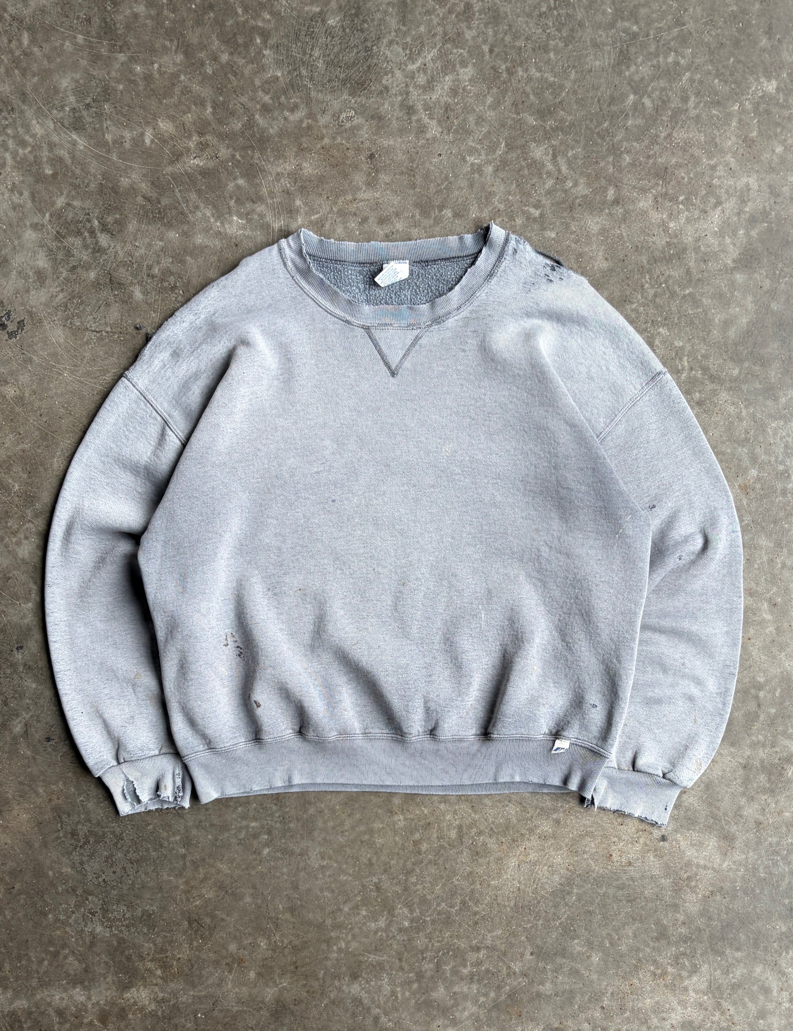 Vintage Grey Distressed Russell Crew - XL