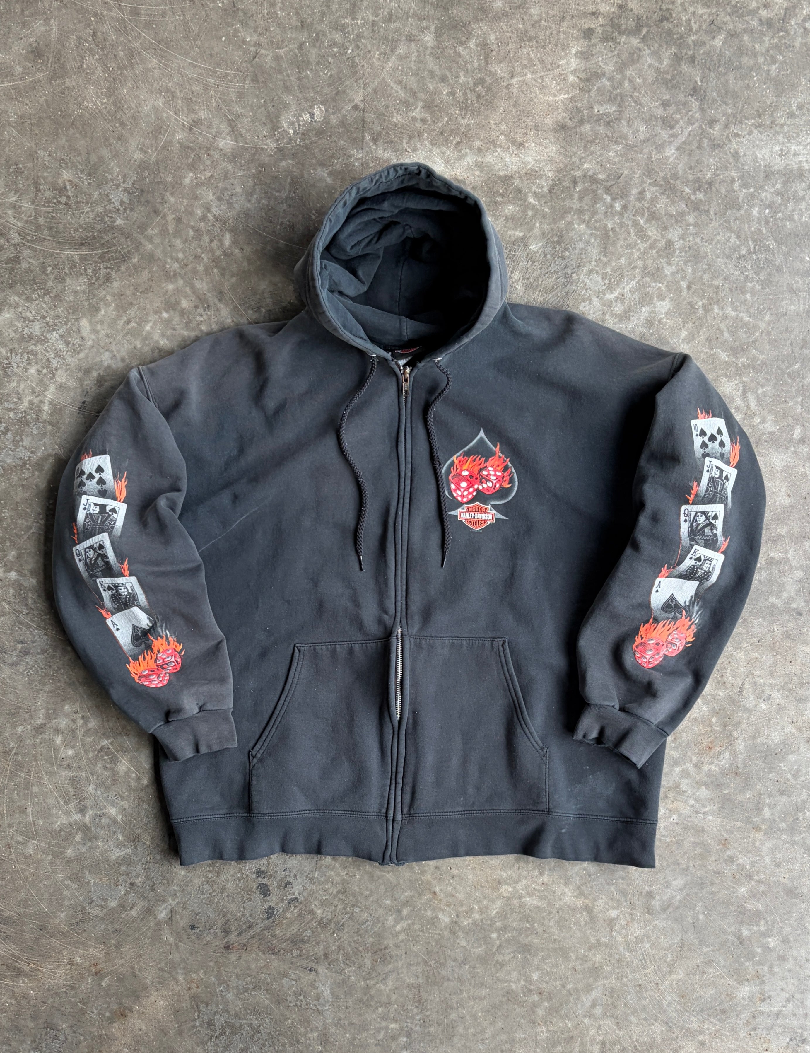 Vintage Harley Davidson Dice & Cards Zip Up Hoodie - L