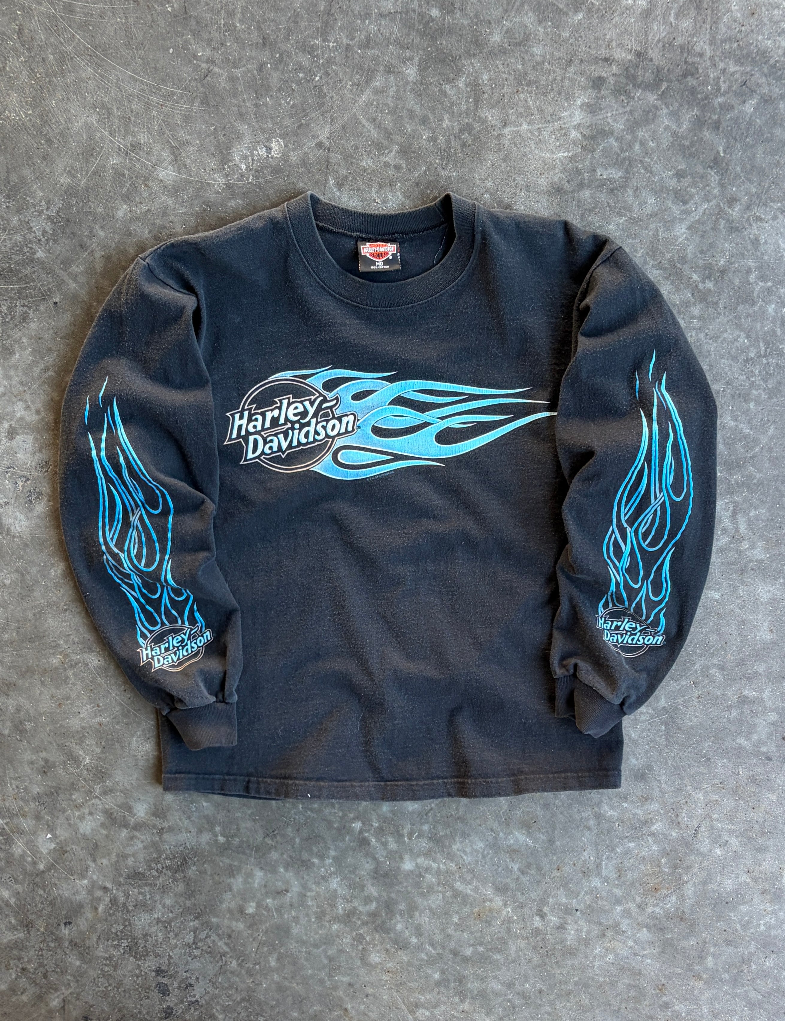 Vintage Harley Davidson Blue Flame Long Sleeve Shirt - M