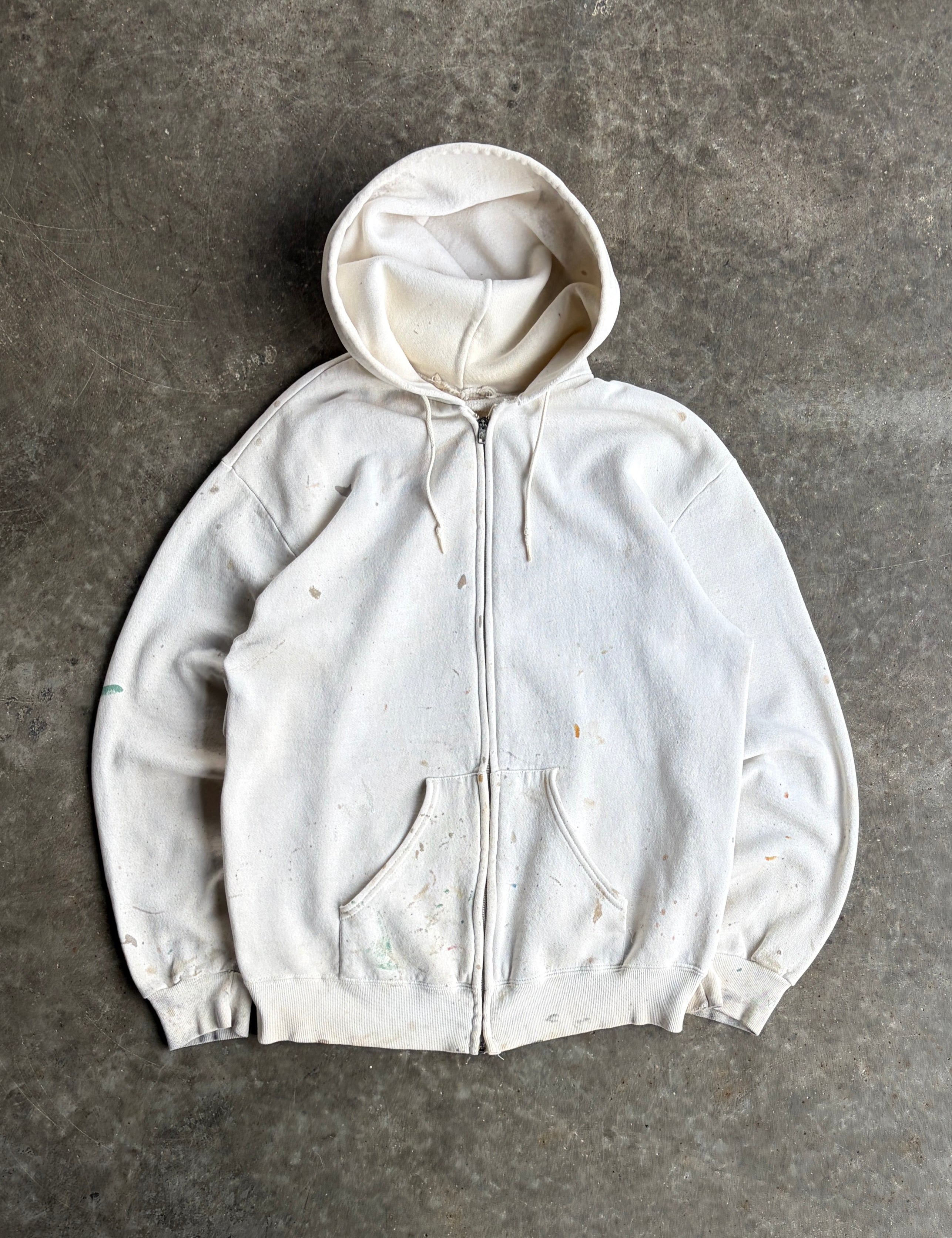 Vintage Painted White Zip Up Hoodie - XL