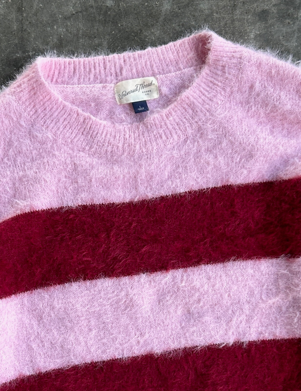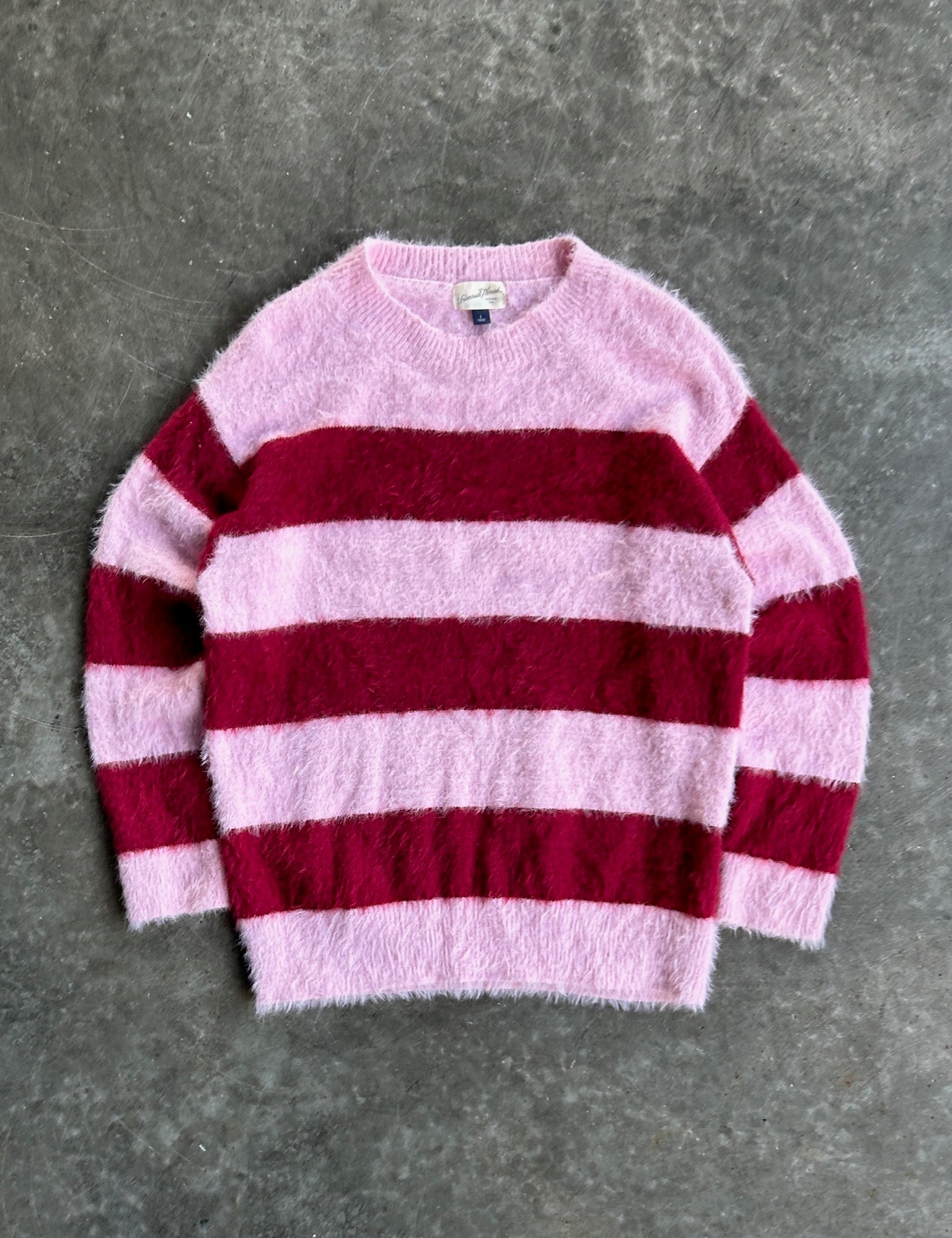 Long Fur Pink Striped Sweater - L