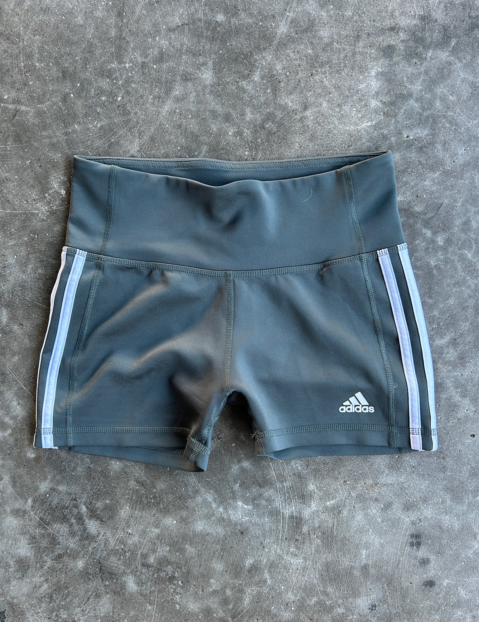 Olive Green Striped Adidas Track Shorts - S