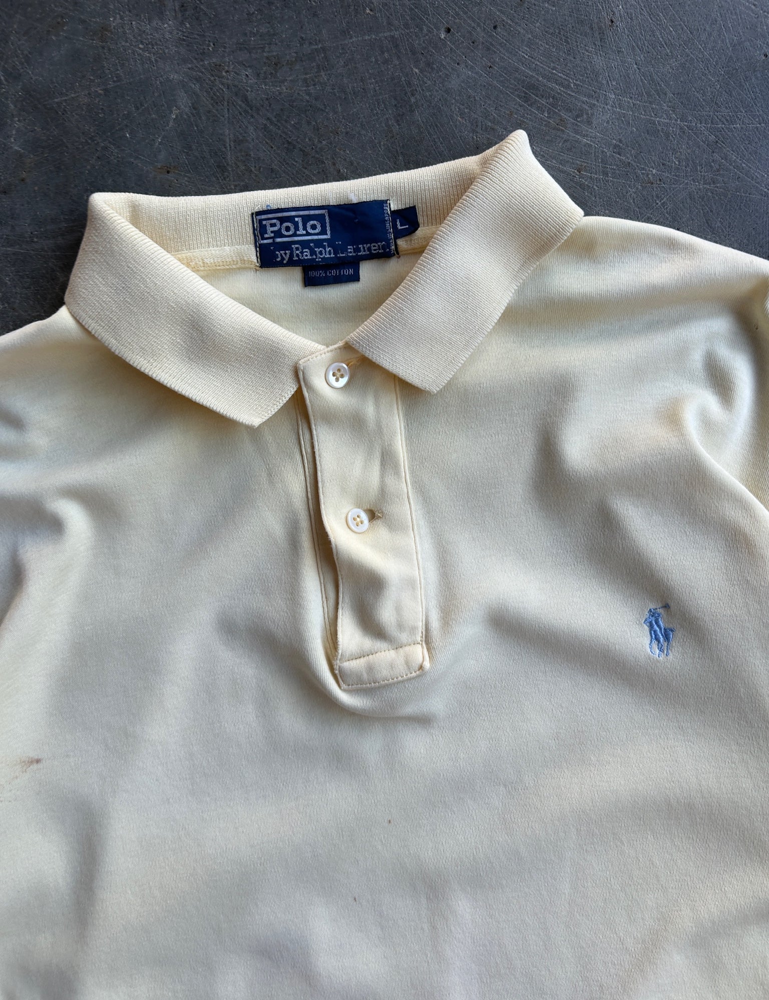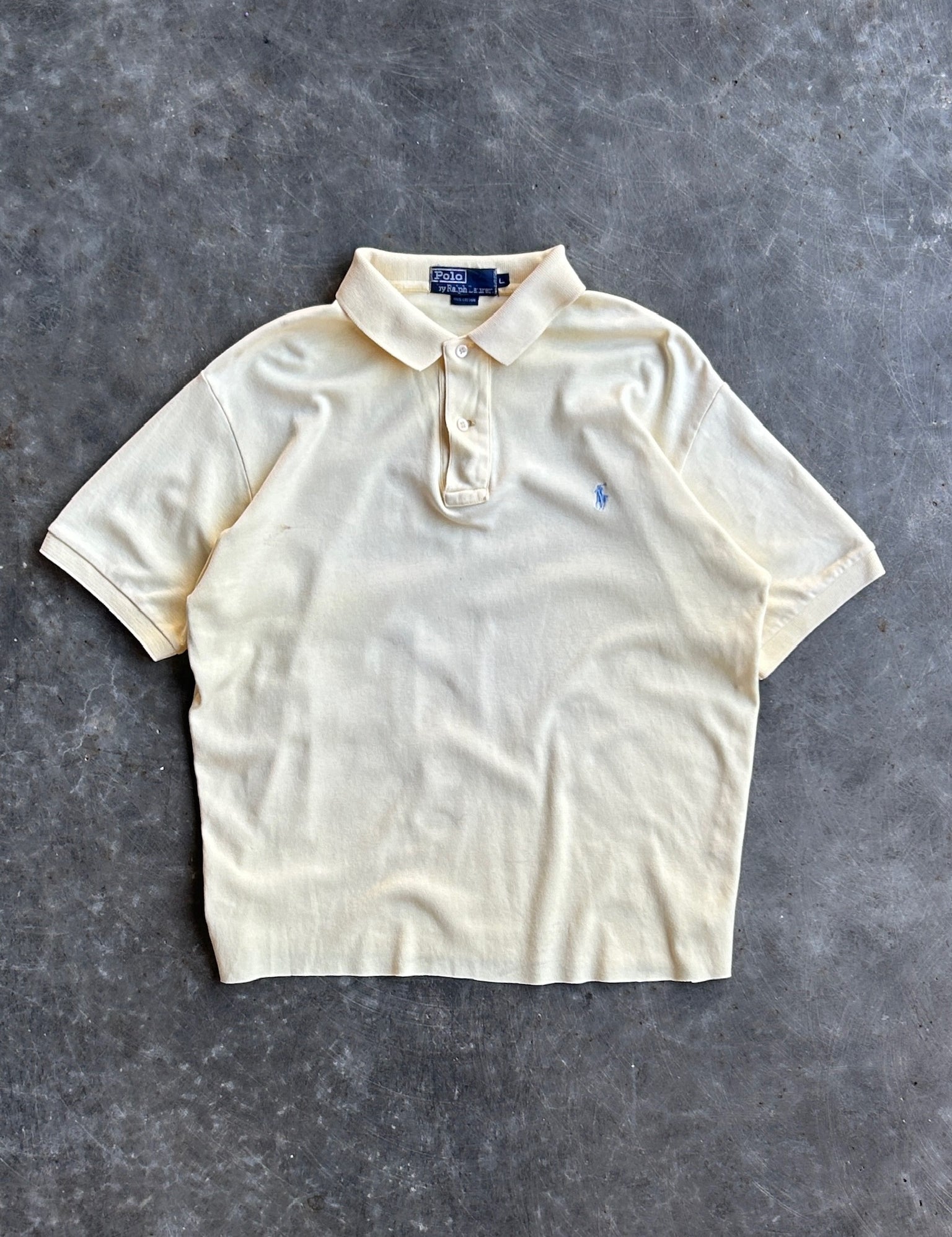 Vintage Pale Yellow Cropped Ralph Lauren Polo Shirt - L