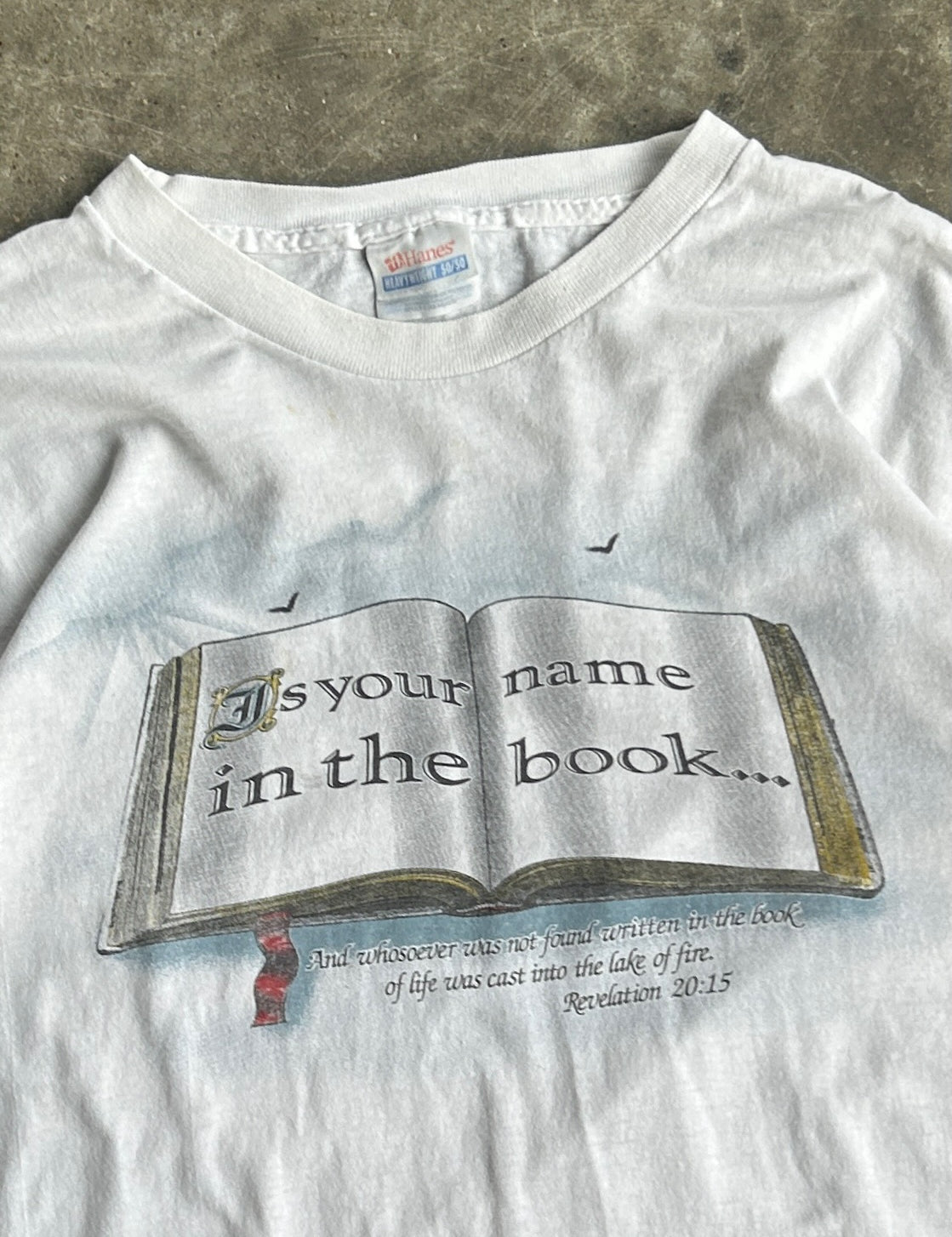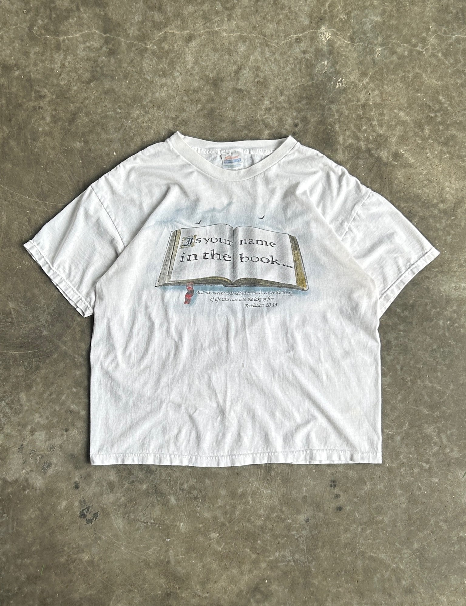 Vintage Revelations 20:15 White Tee - L