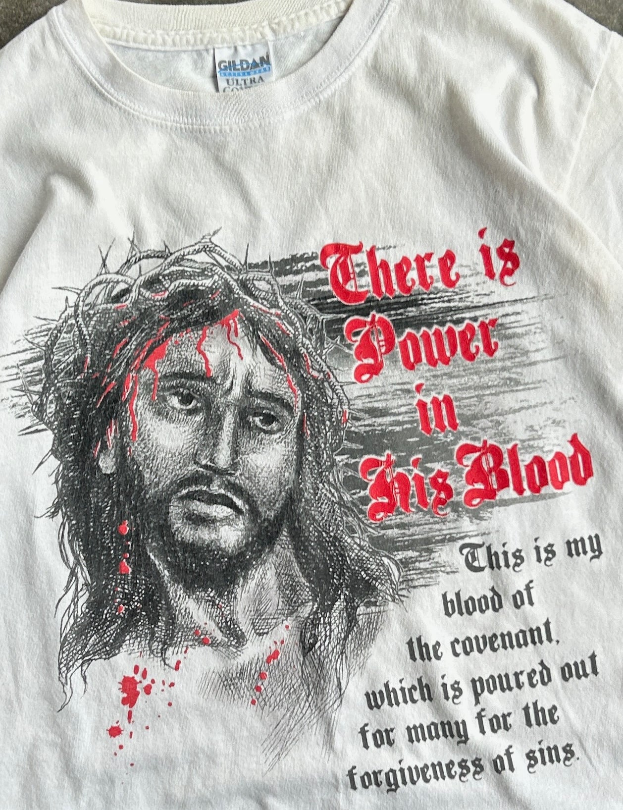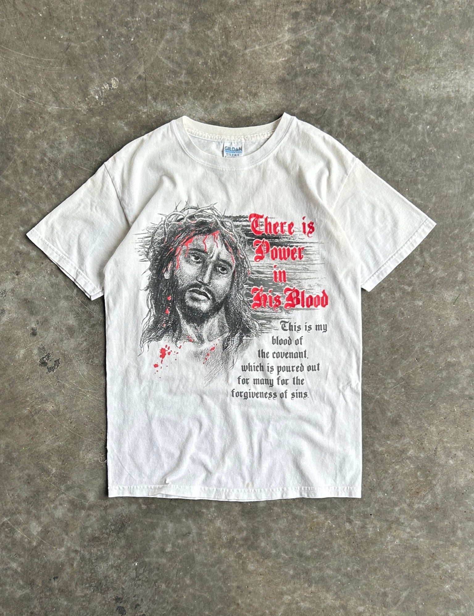 Vintage Power in His Blood Jesus Tee - S