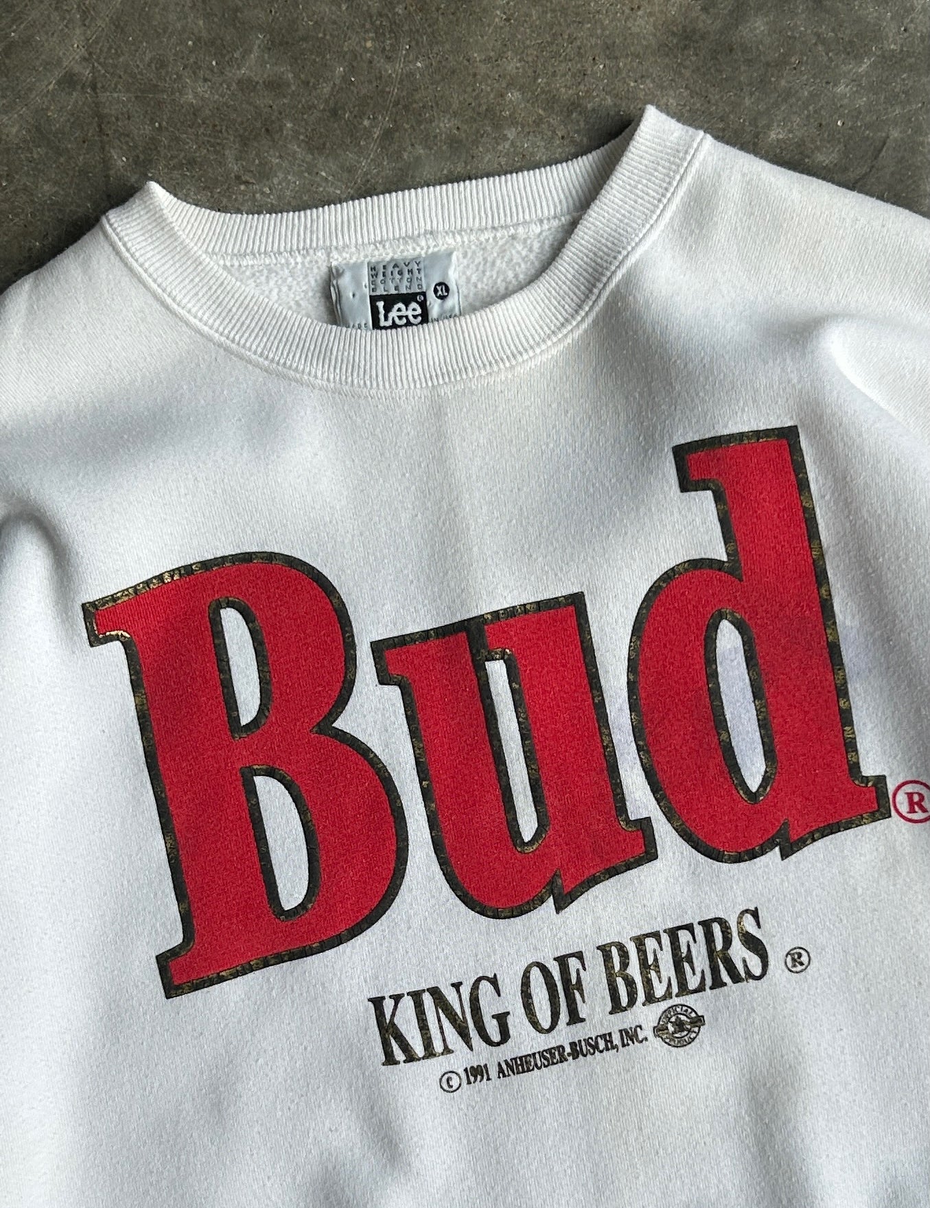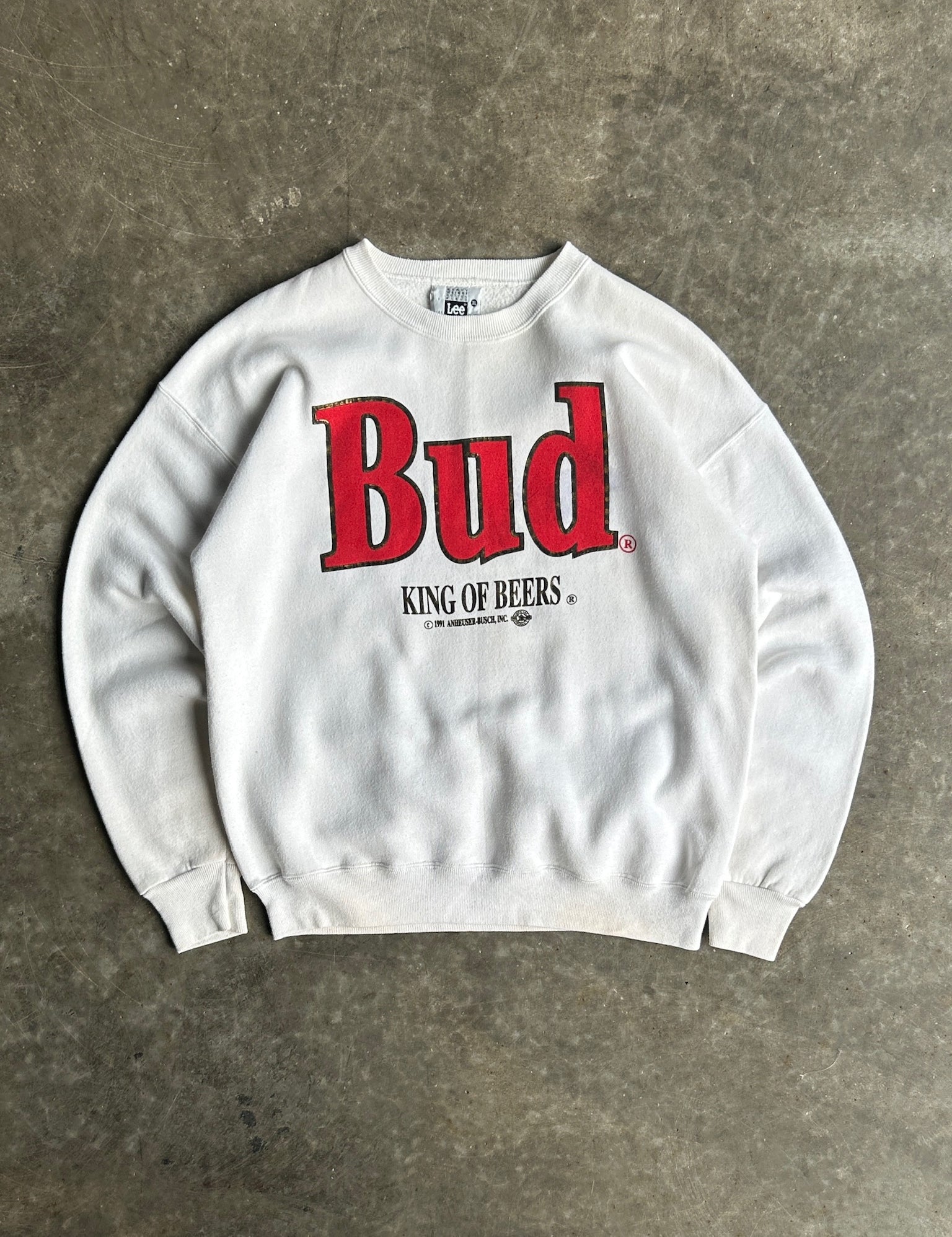 Vintage White Bud King Of Beers Crew - XL