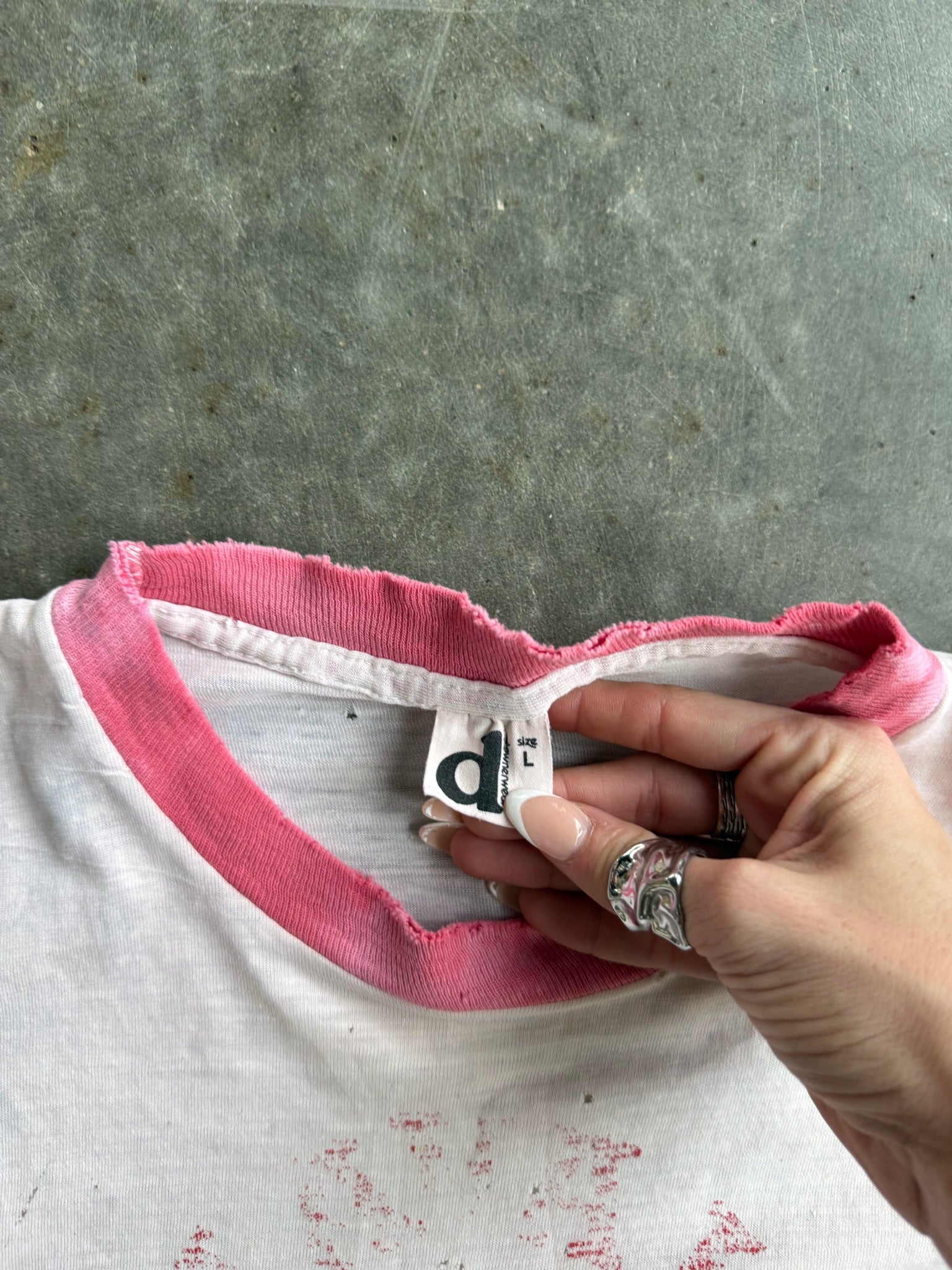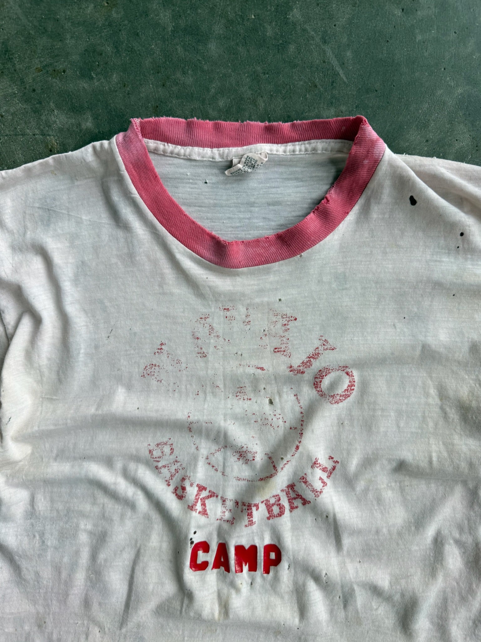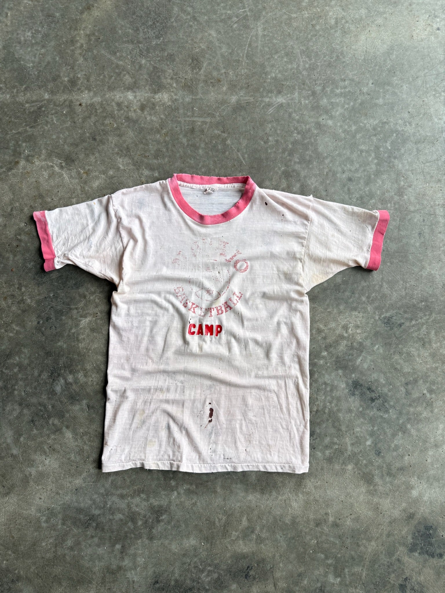 True Vintage Pink Basketball Camp Faded Graphic Distressed Tee - L