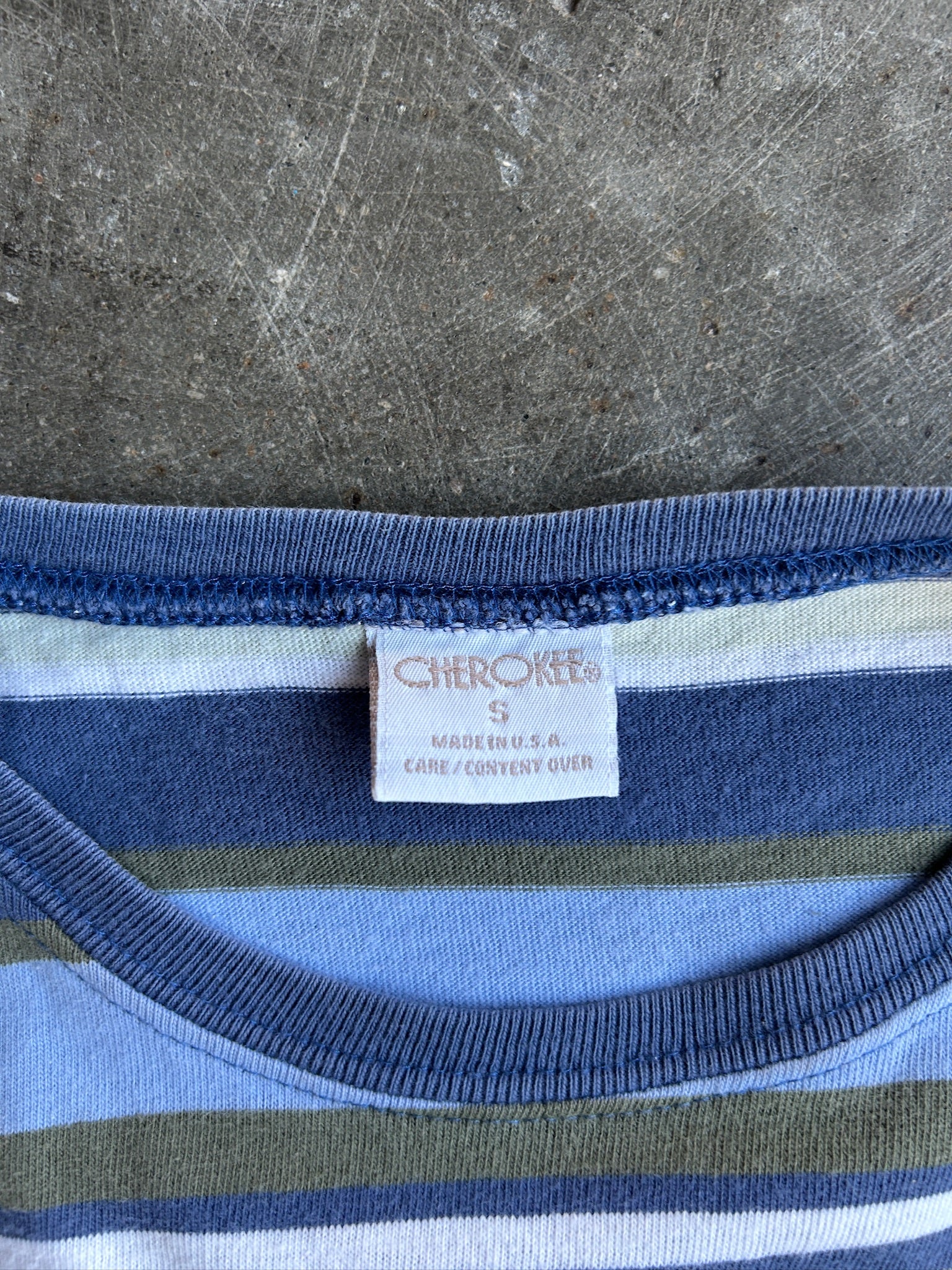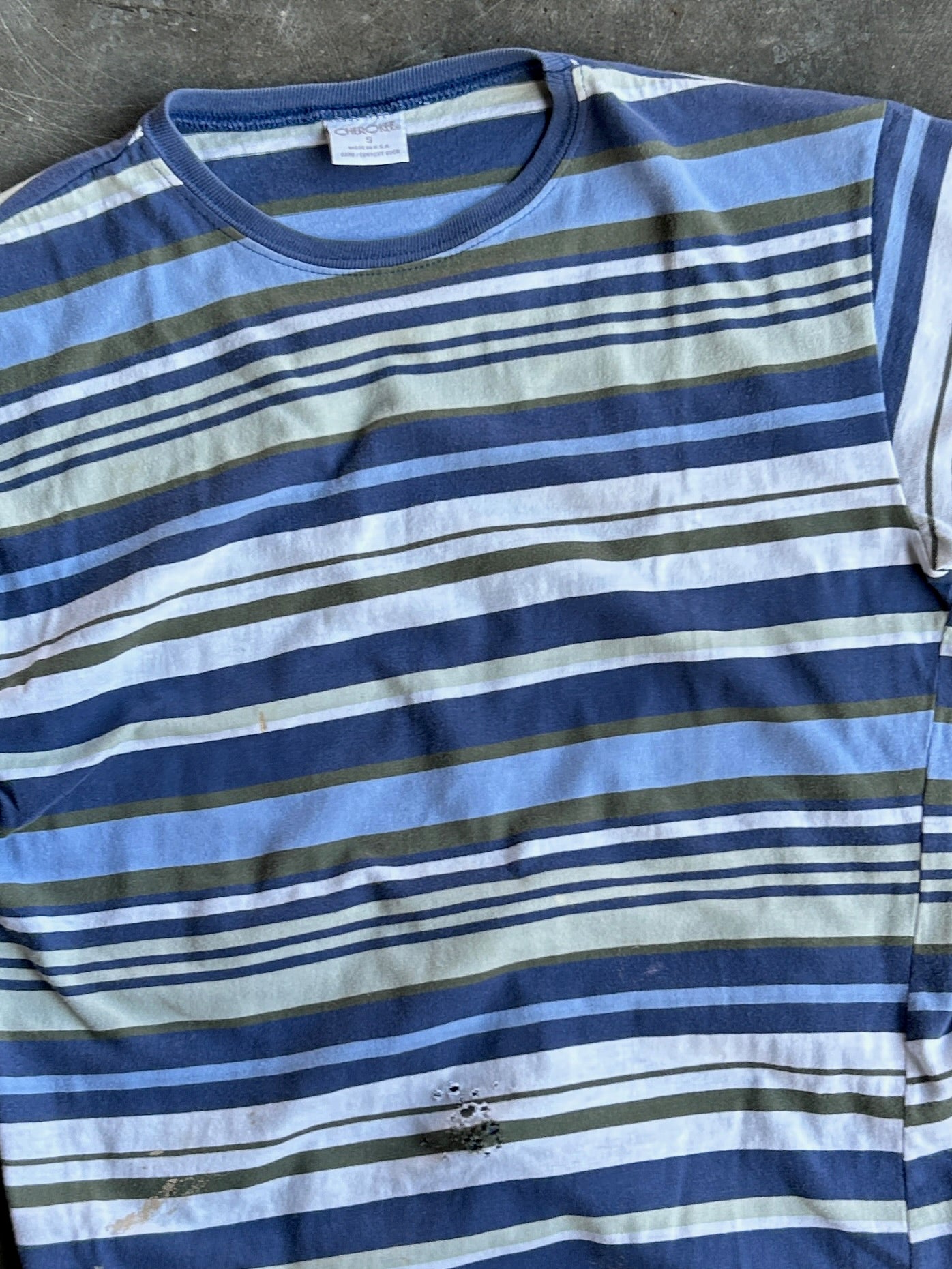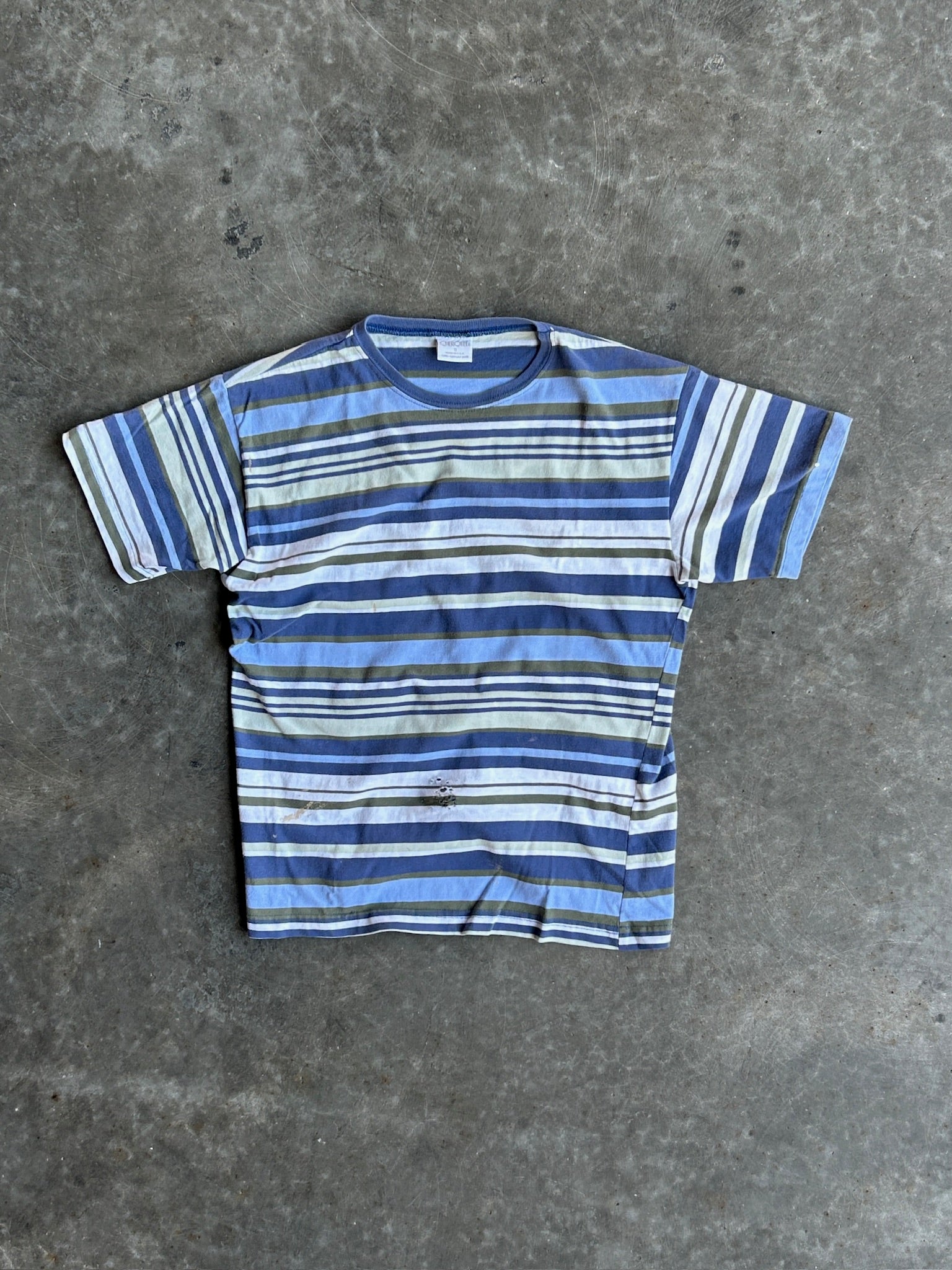 Vintage Blue and Green Striped Tee - S