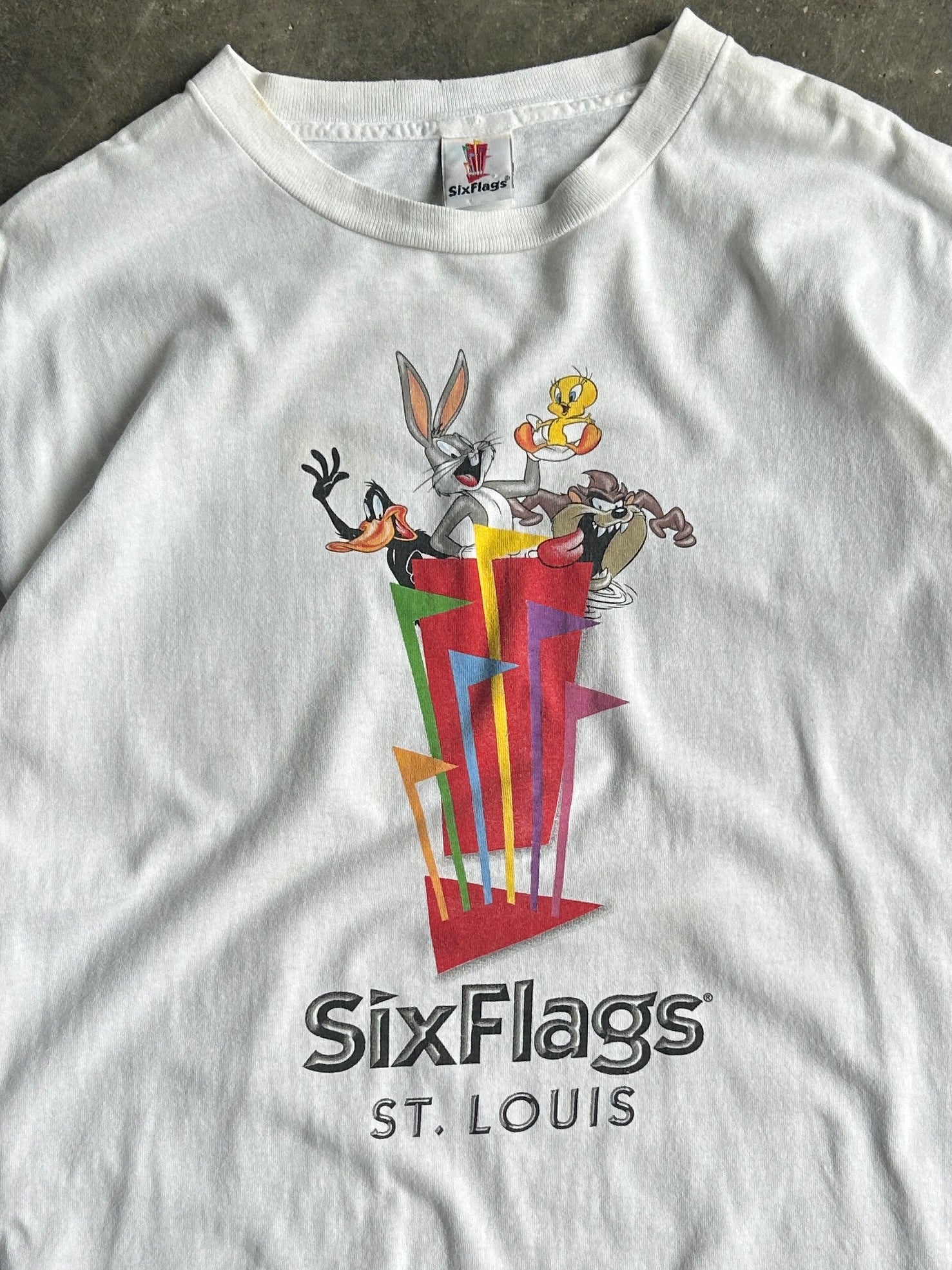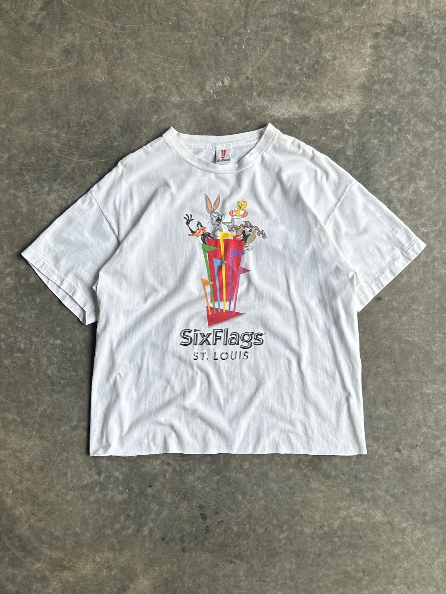 Vintage Cropped Six Flags St. Louis Looney Tunes Shirt - XL