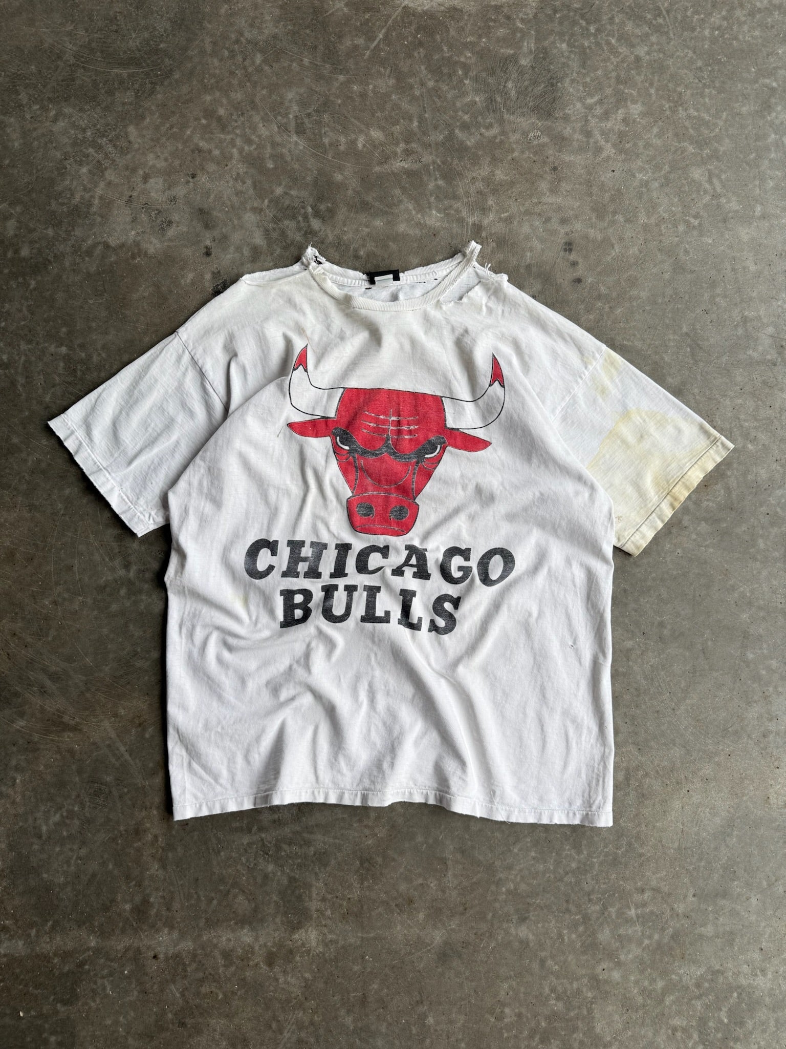 Vintage Distressed White Chicago Bulls Shirt - XL
