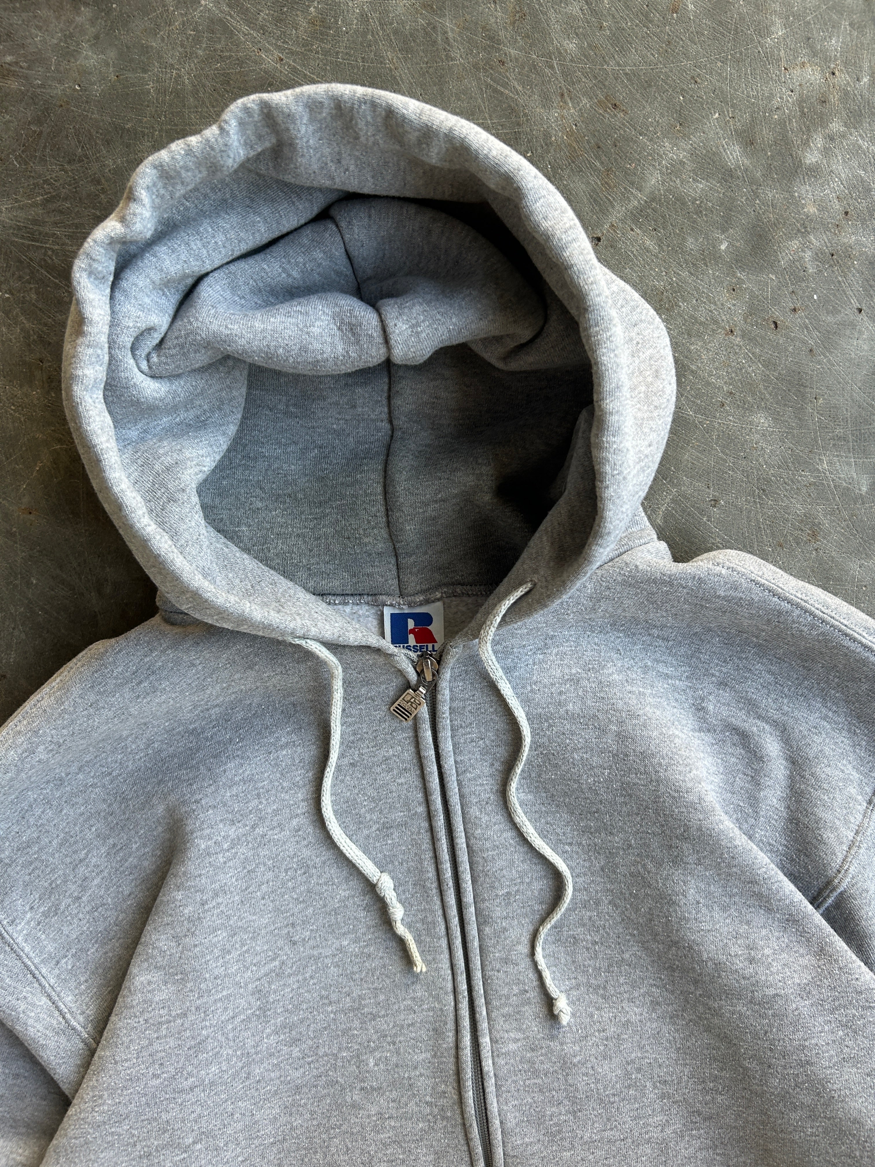 Vintage Grey Russell Zip Up Hoodie - M
