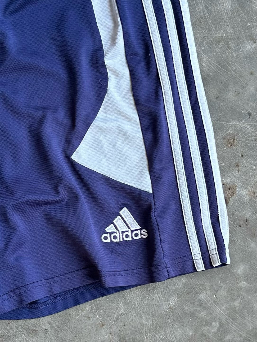 Vintage Navy and Grey Adidas Track Shorts - XL