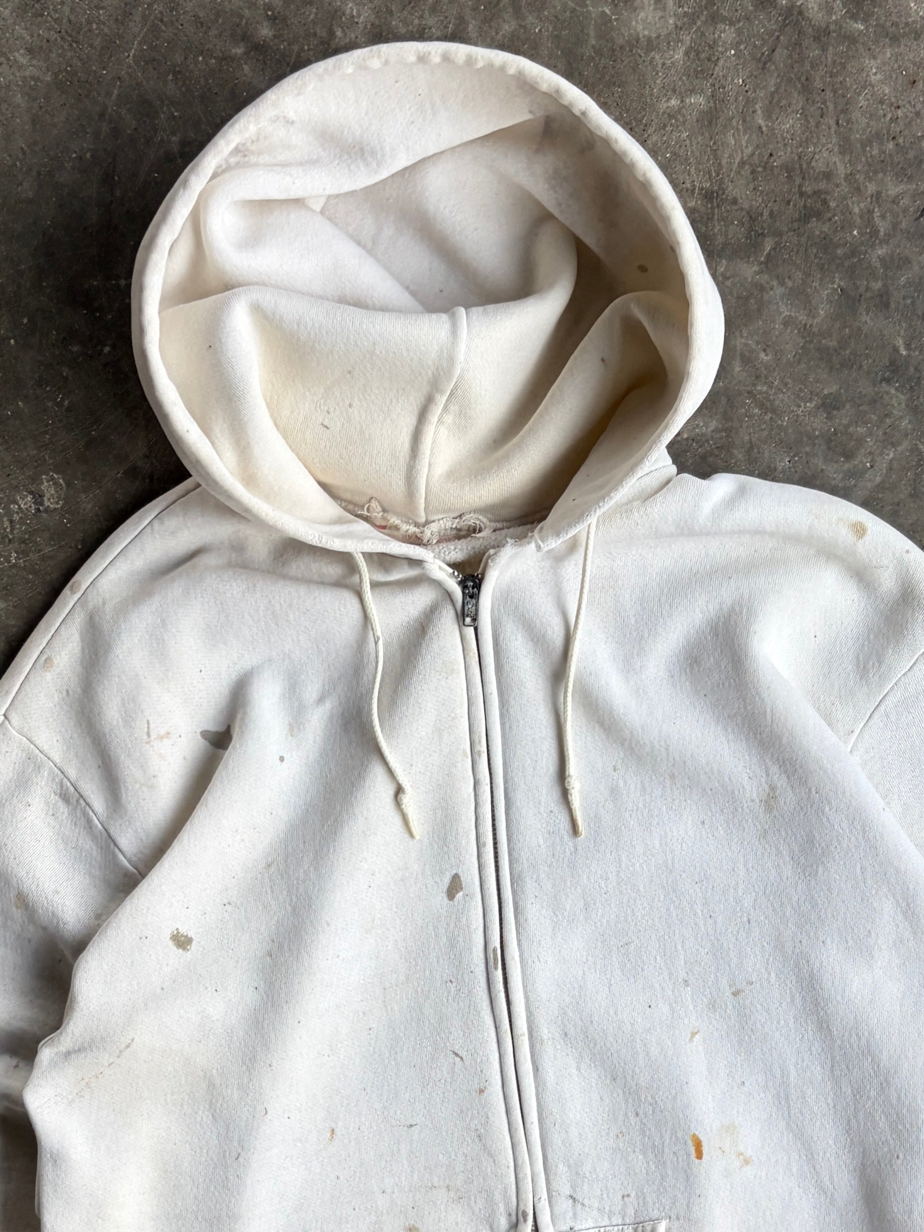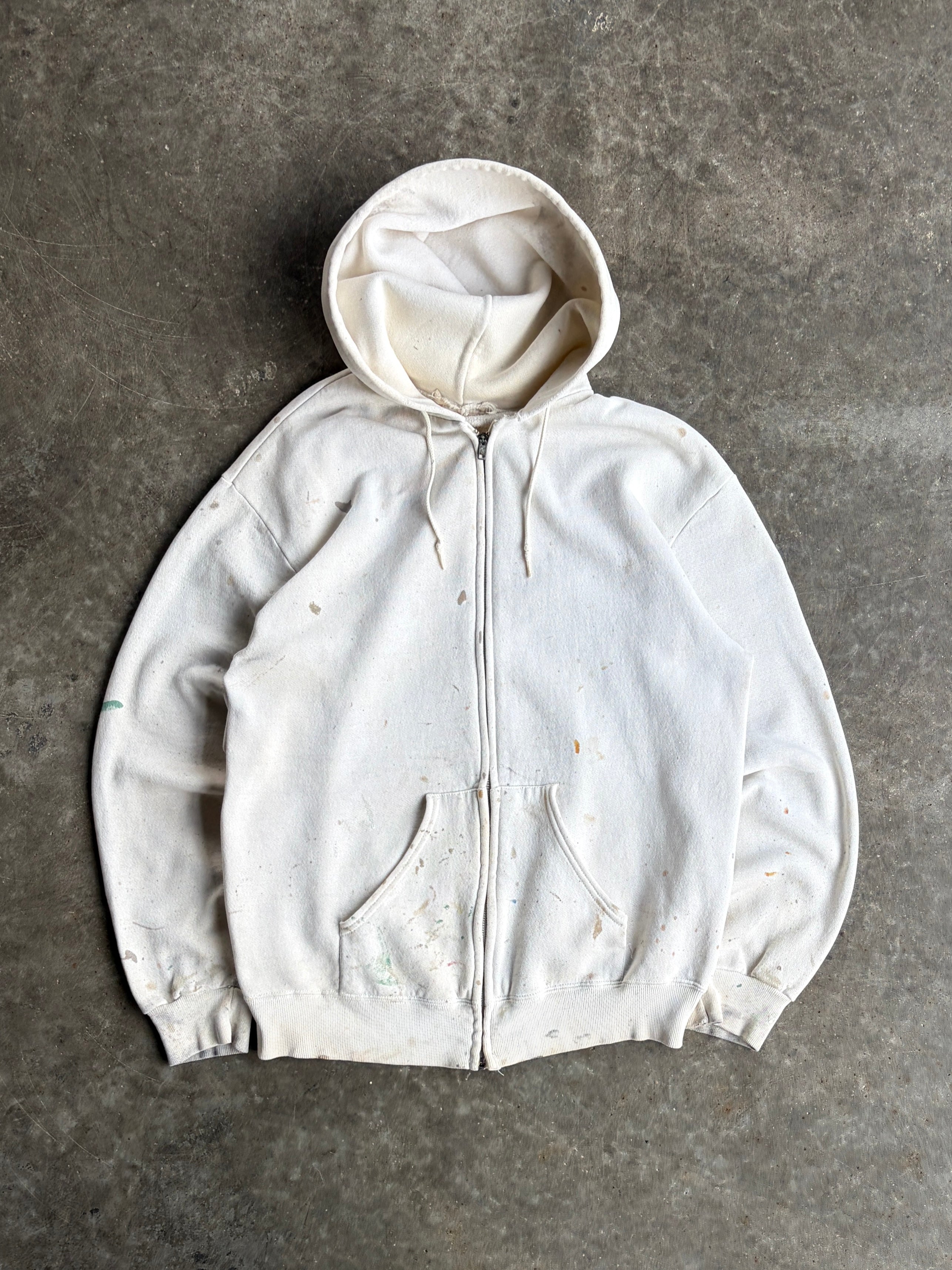 Vintage Painted White Zip Up Hoodie - XL