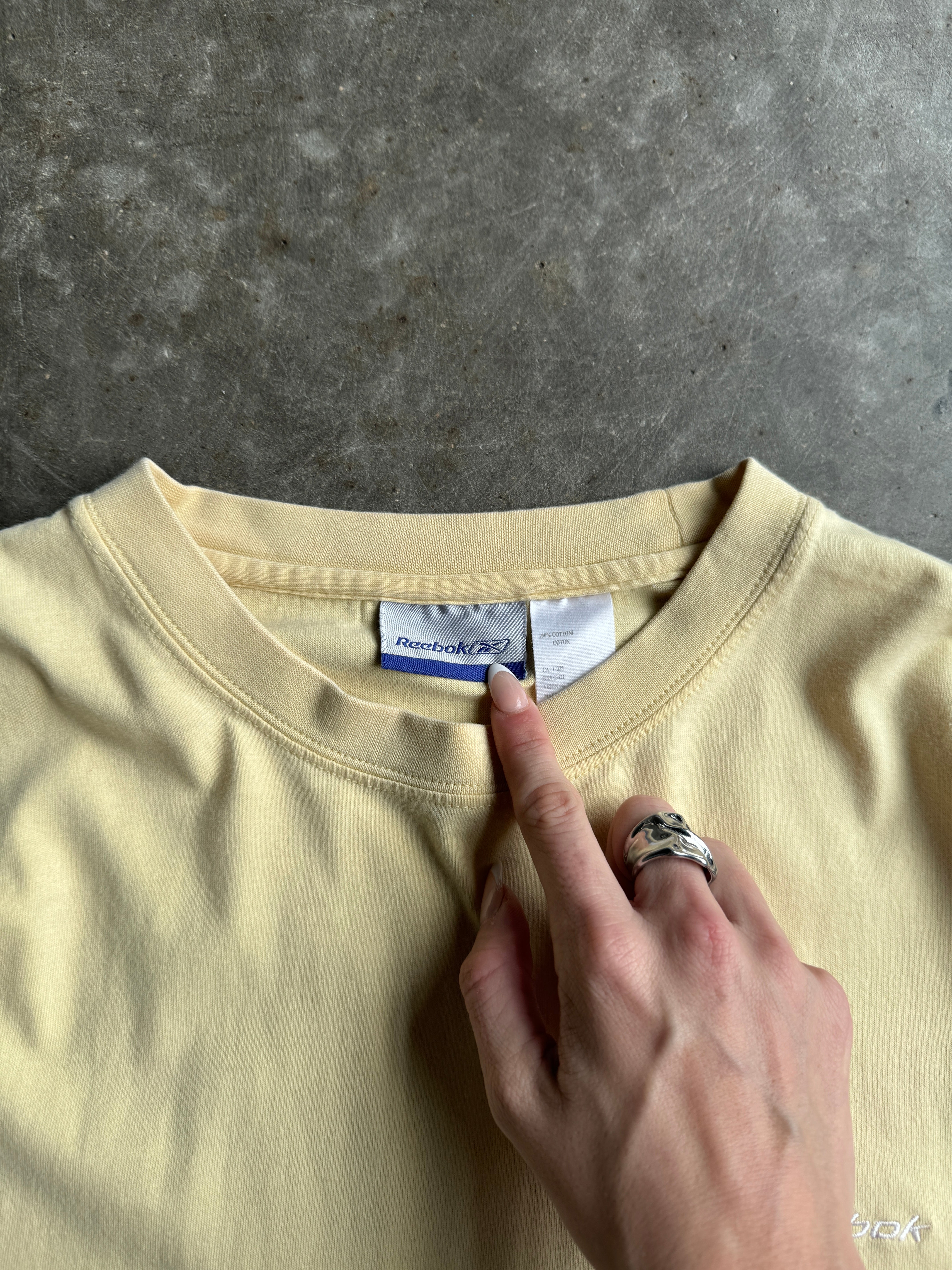 Vintage Pastel Yellow Cropped Reebok Tee - L