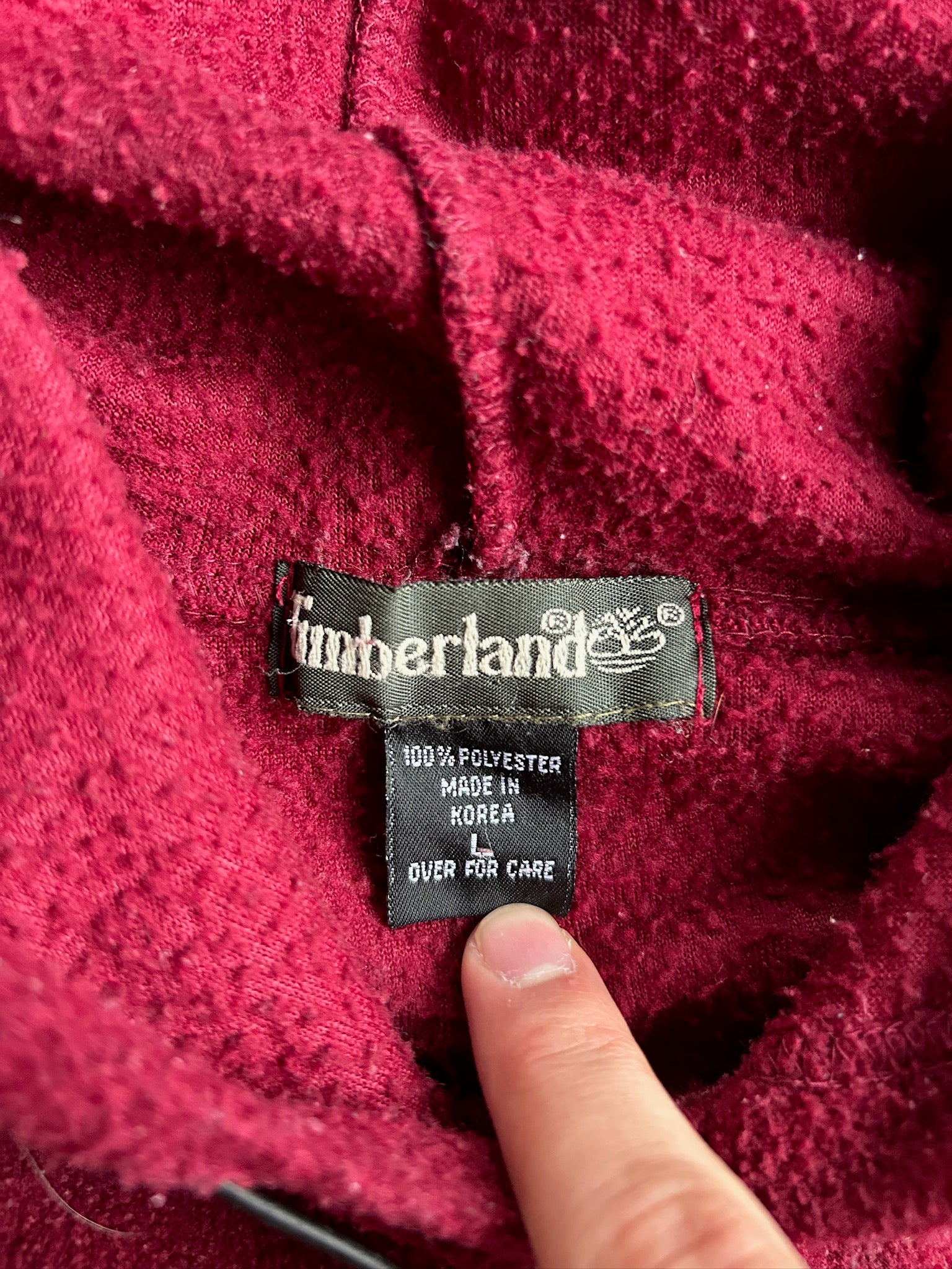 Vintage Red Timberland Fleece Hoodie - L