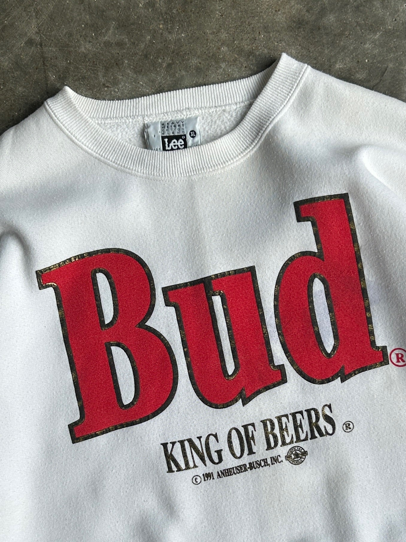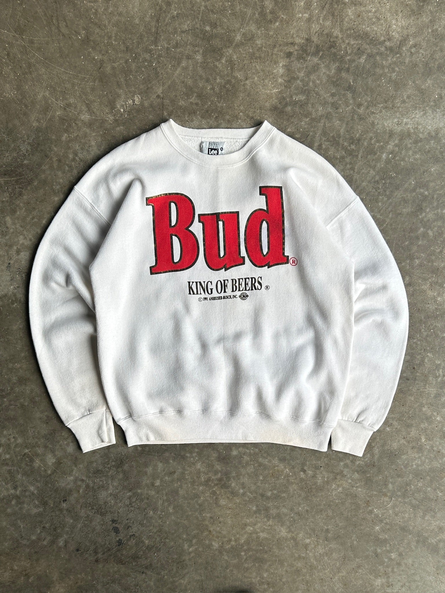 Vintage White Bud King Of Beers Crew - XL