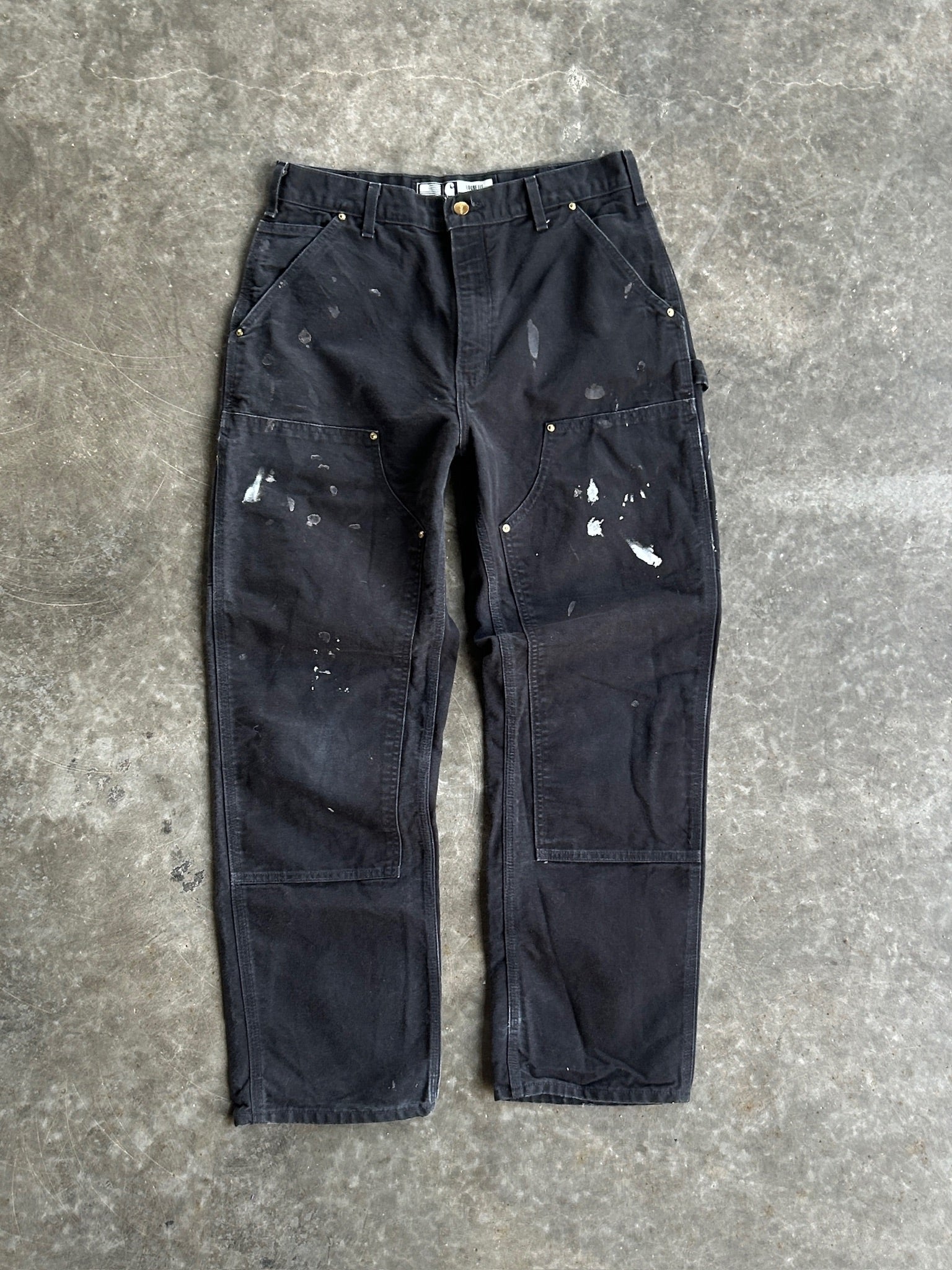 Vintage Black Painted Double Knee Carhartt Pants - 32