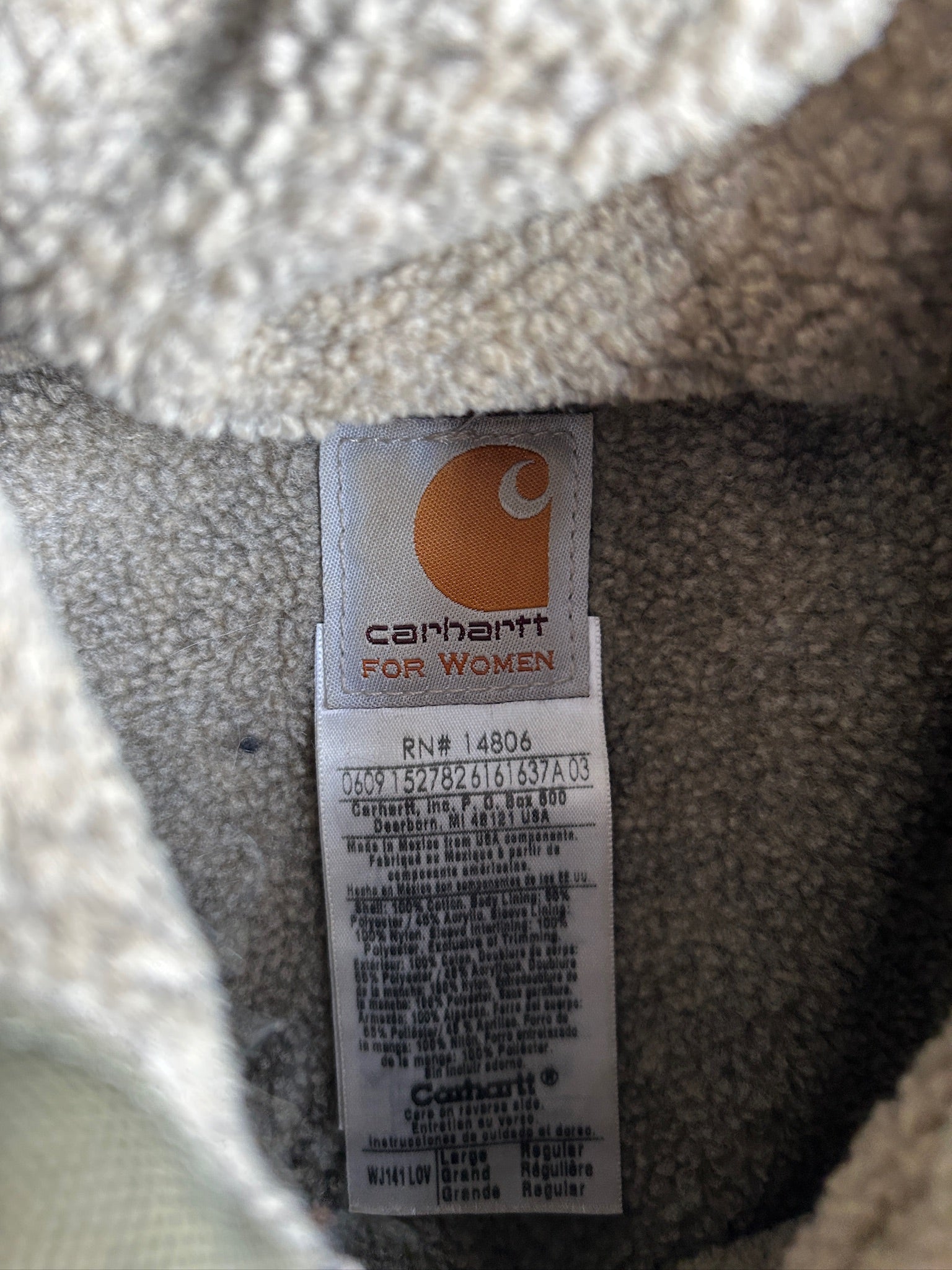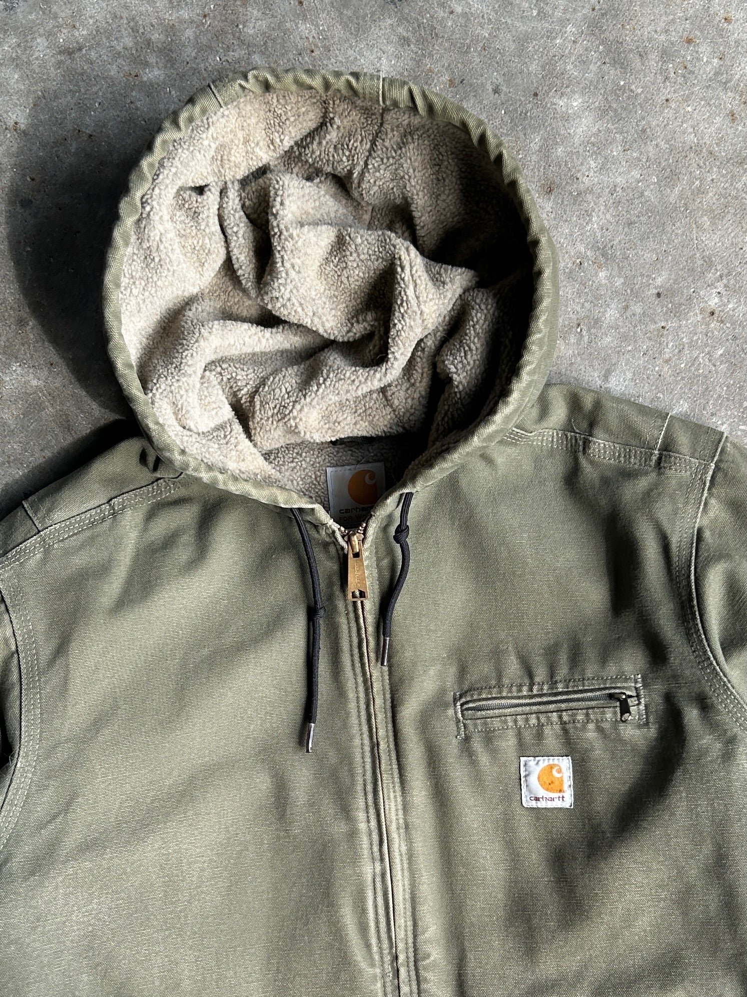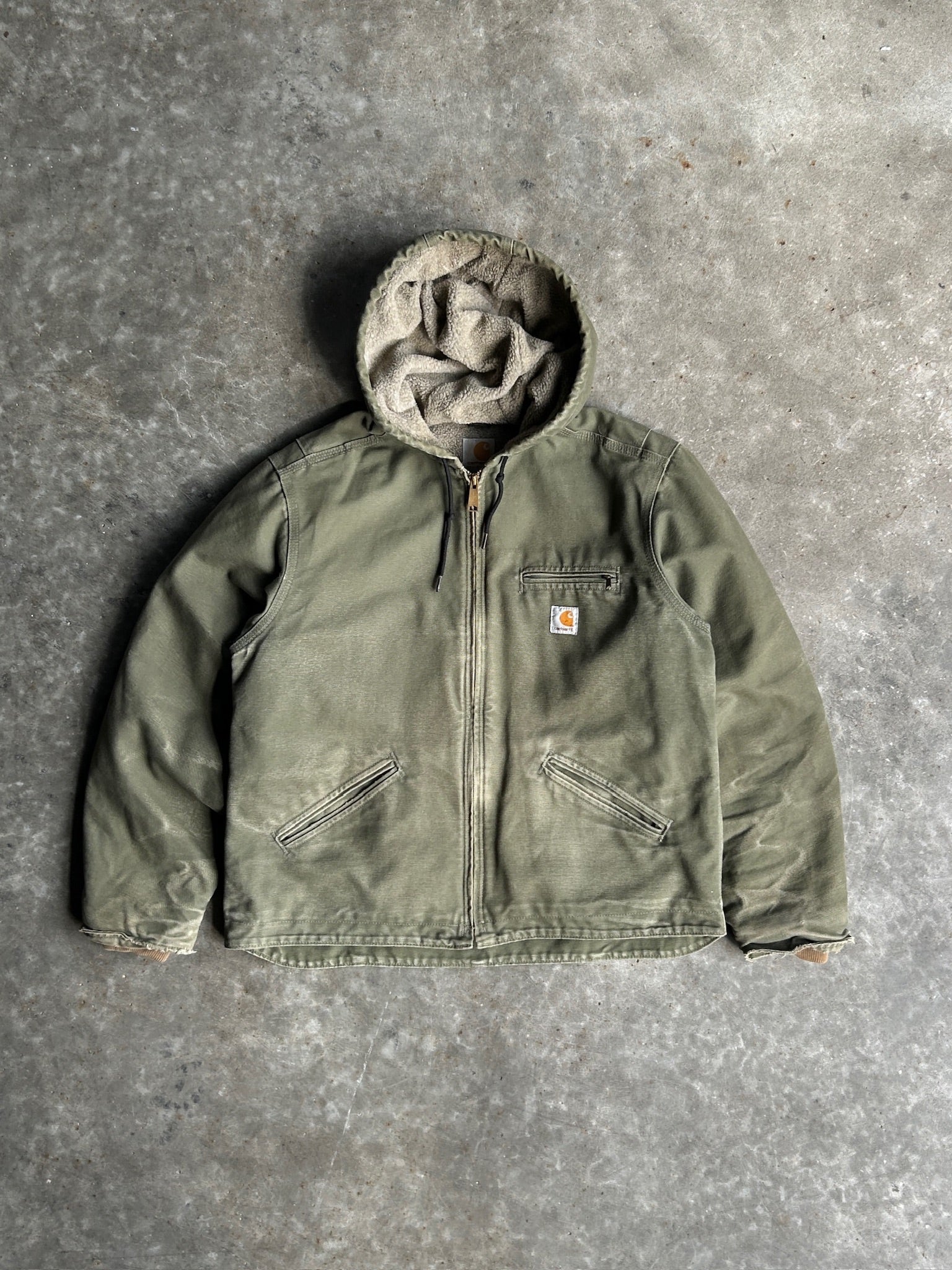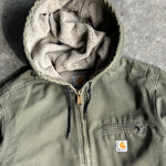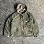 Vintage Olive Green Fleece Lined Hooded Carhartt Jacket - L