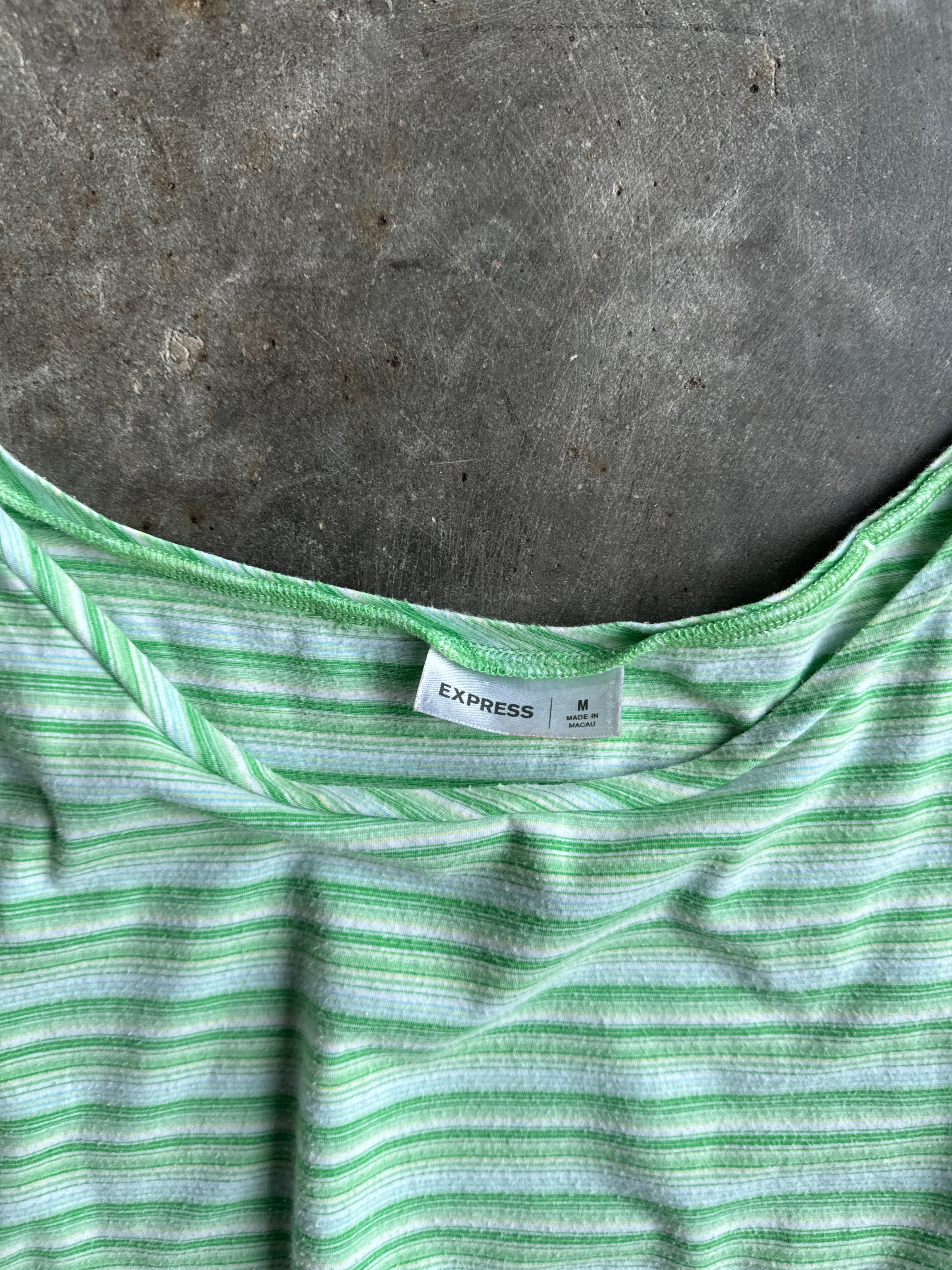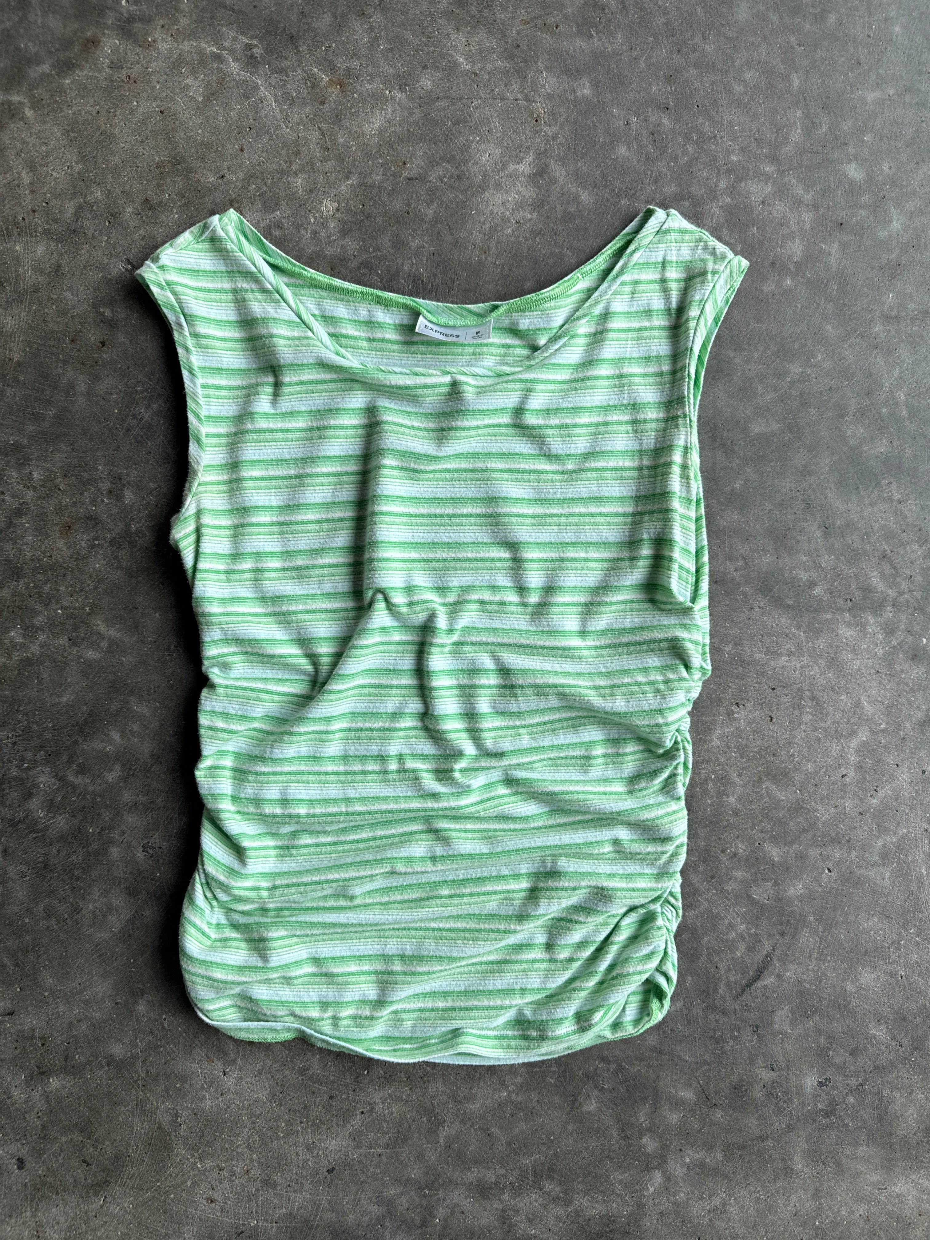 Vintage Green Striped Ruched Tank Top - M