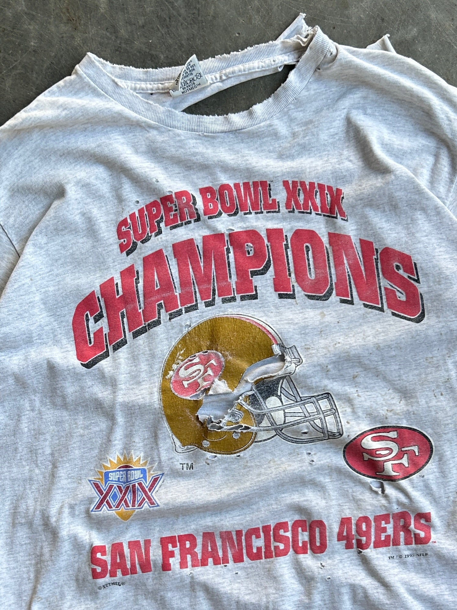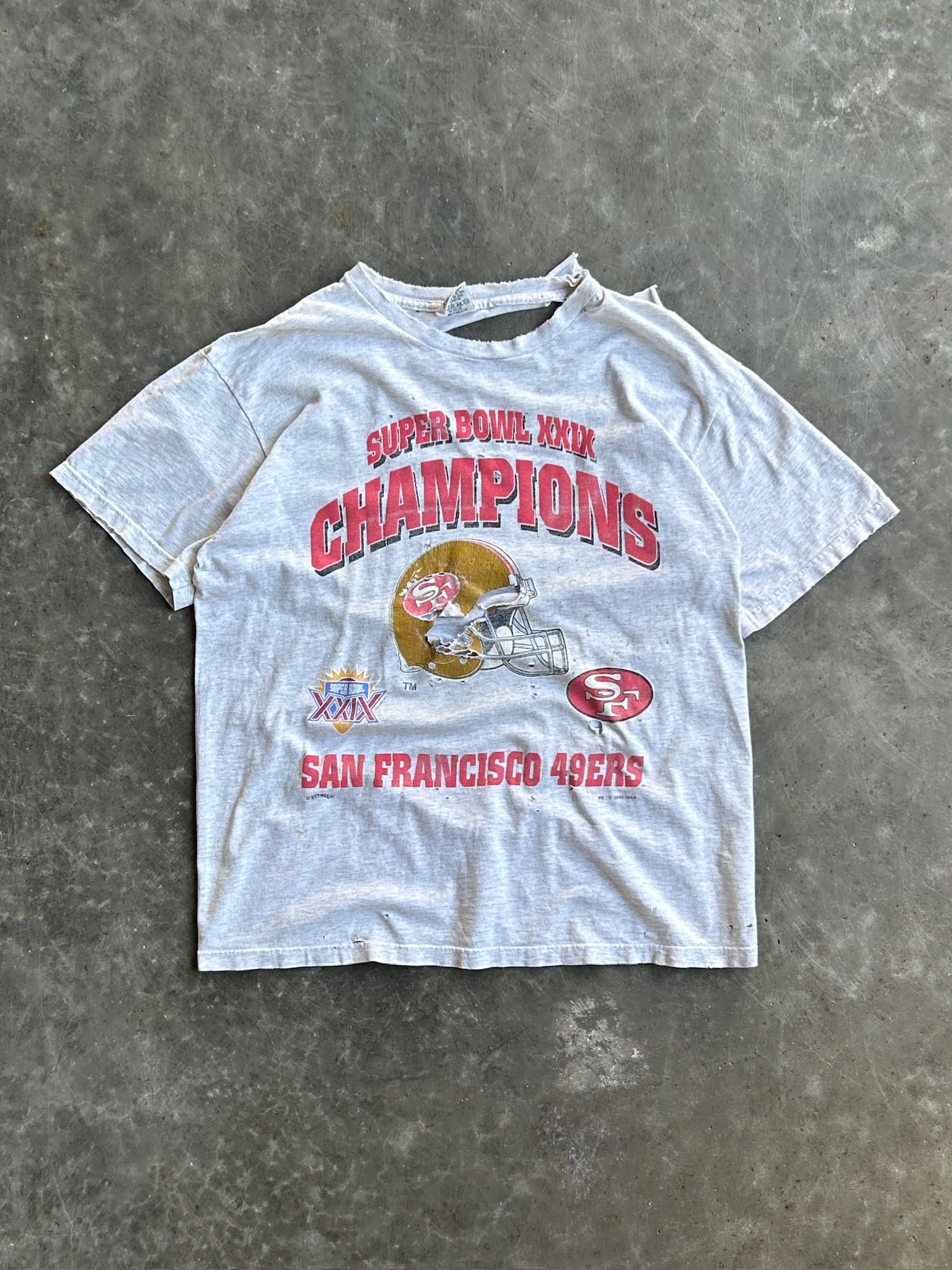 Vintage Grey Distressed 1995 San Francisco 49ers Super Bowl XXIX Champions Shirt - XL