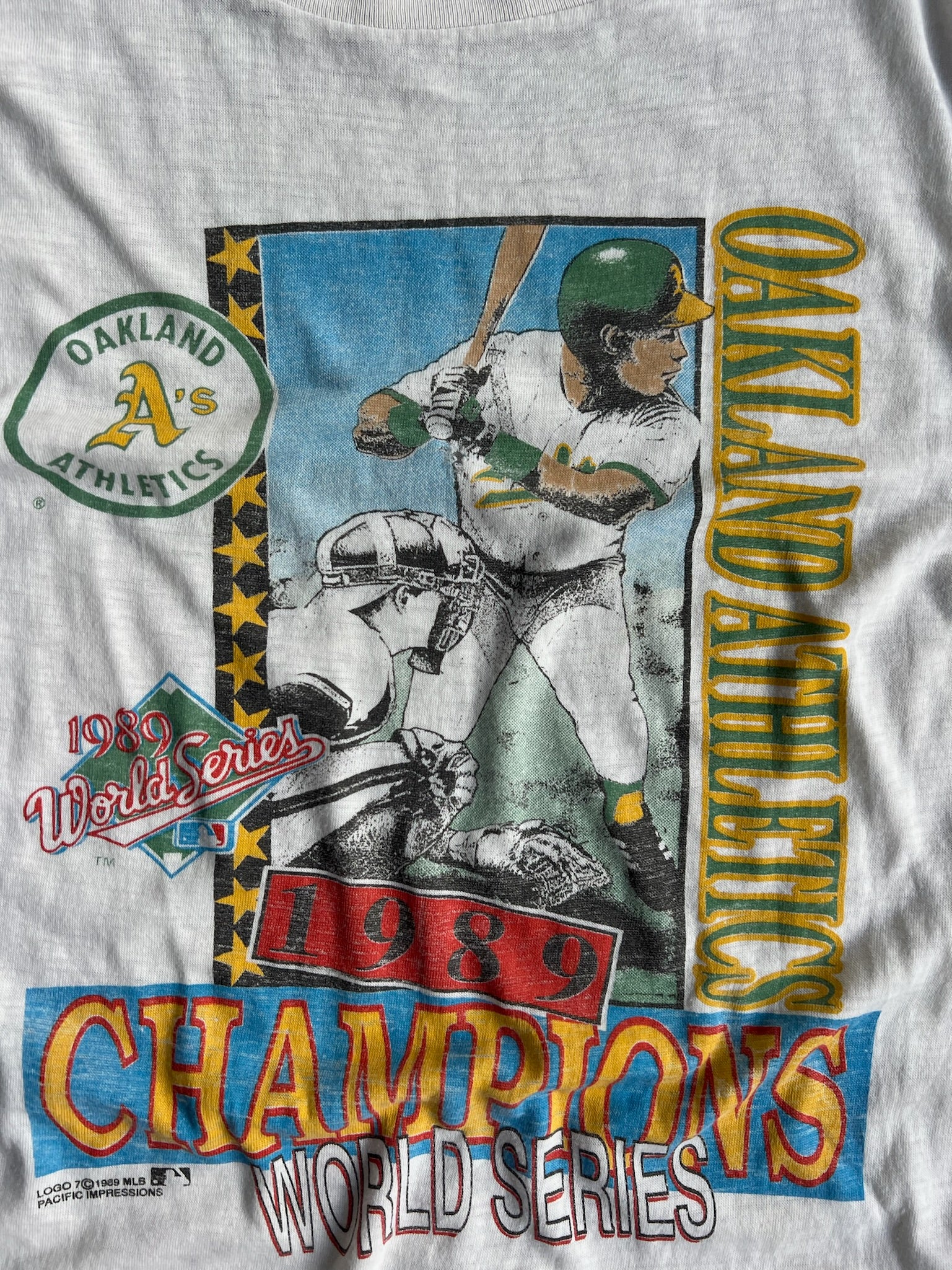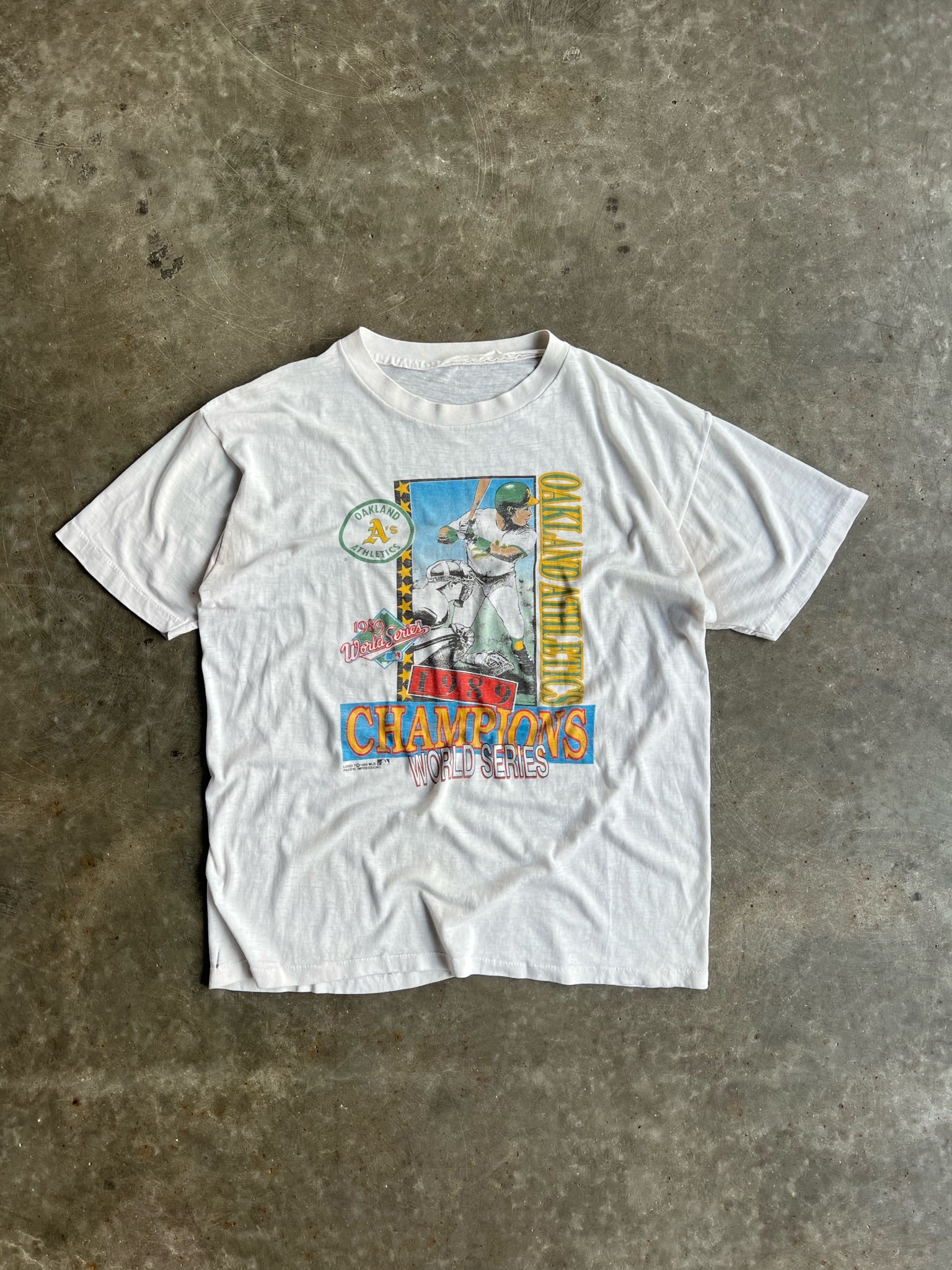 Vintage Single Stitch Oakland Athletics 1989 World Series Champions Shirt - L