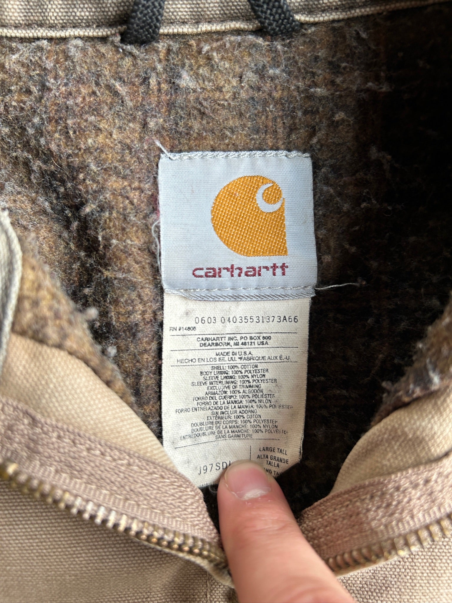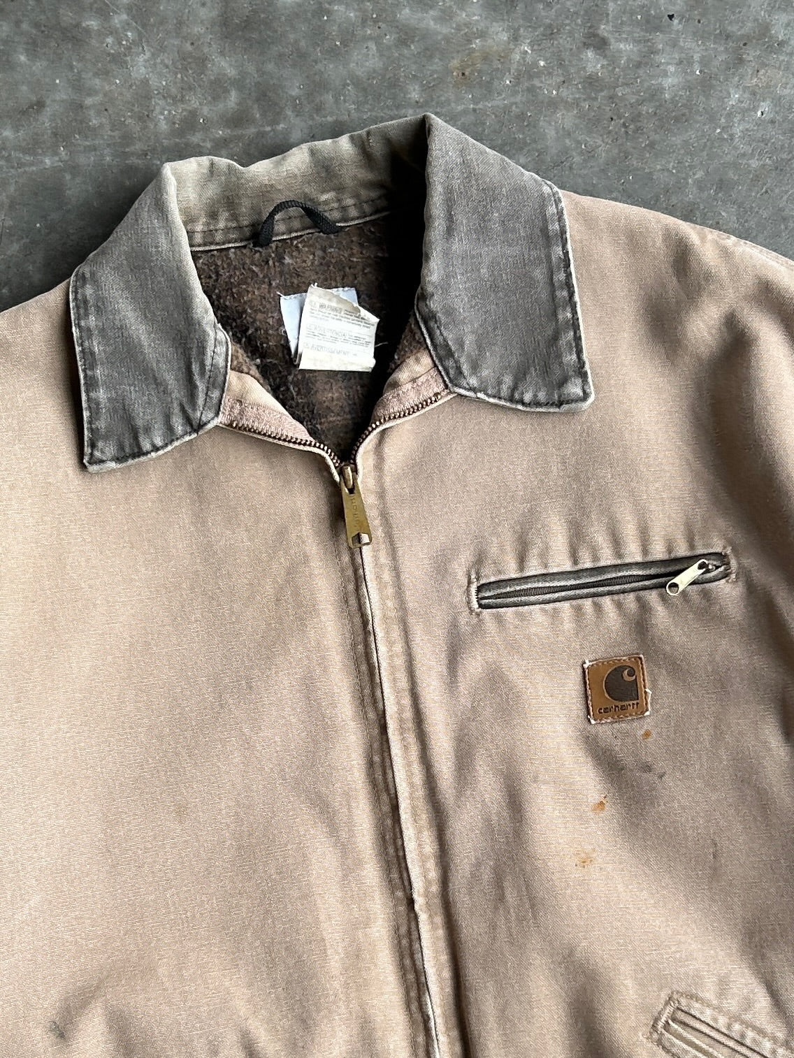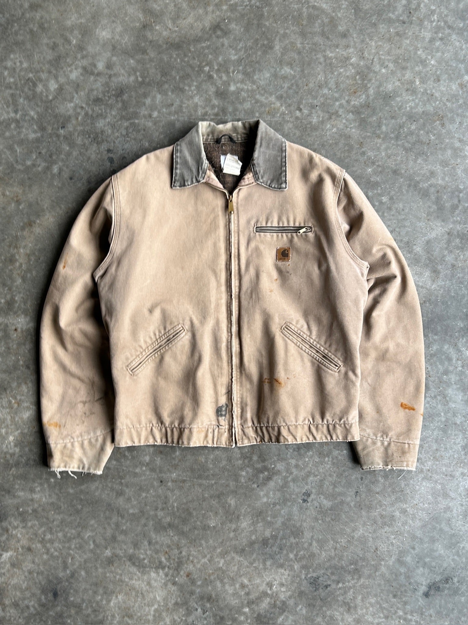 Vintage Tan Distressed Flannel Lined Detroit Carhartt Jacket - XL
