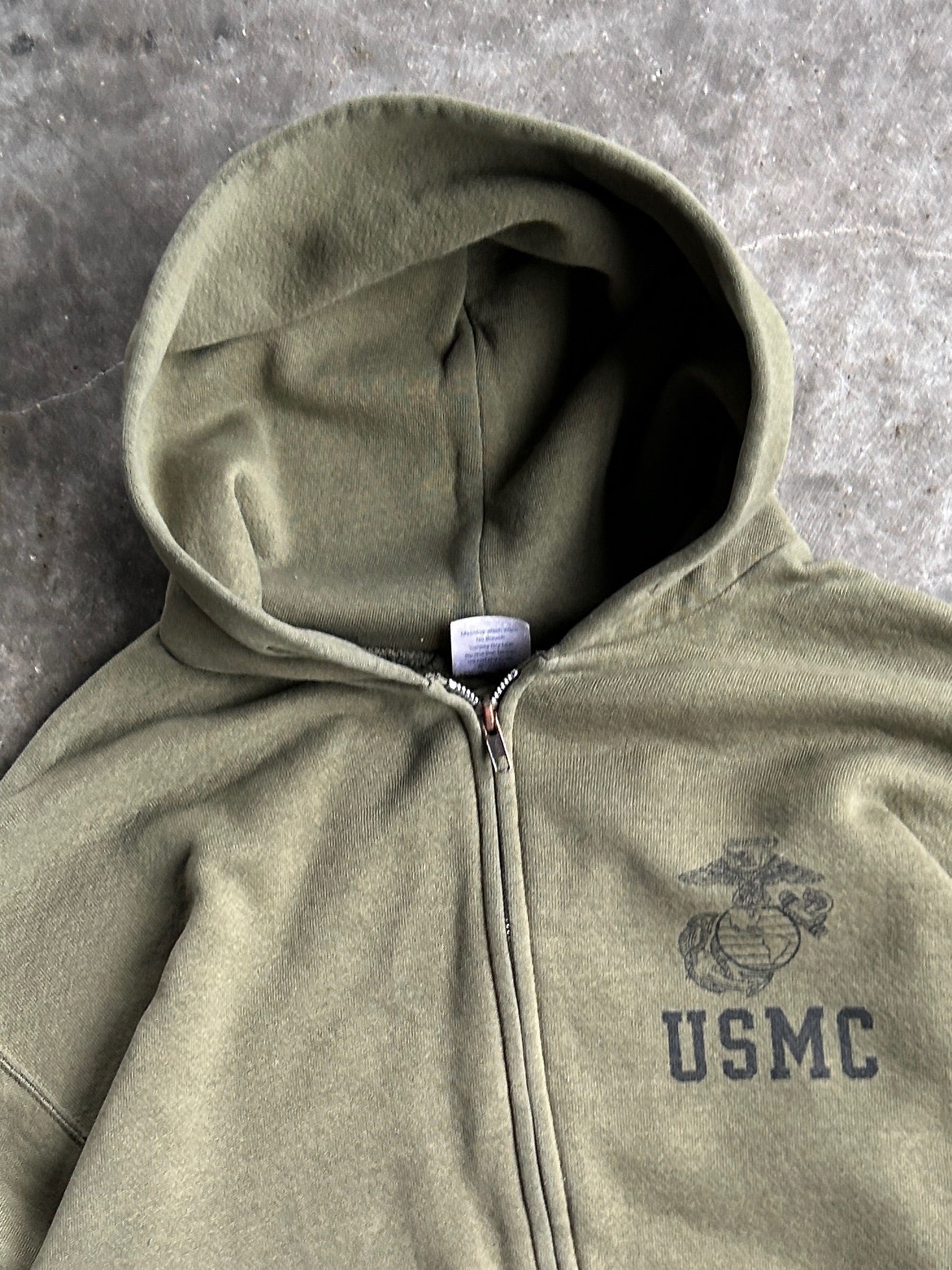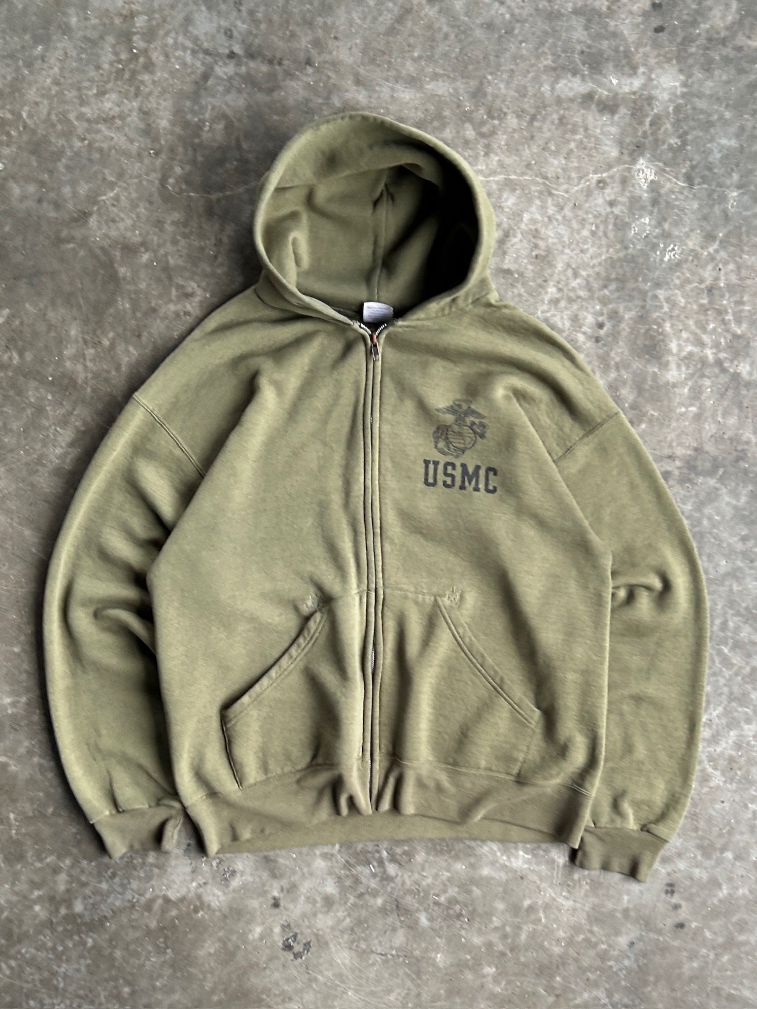 Vintage USMC Green Zip Up Hoodie - L